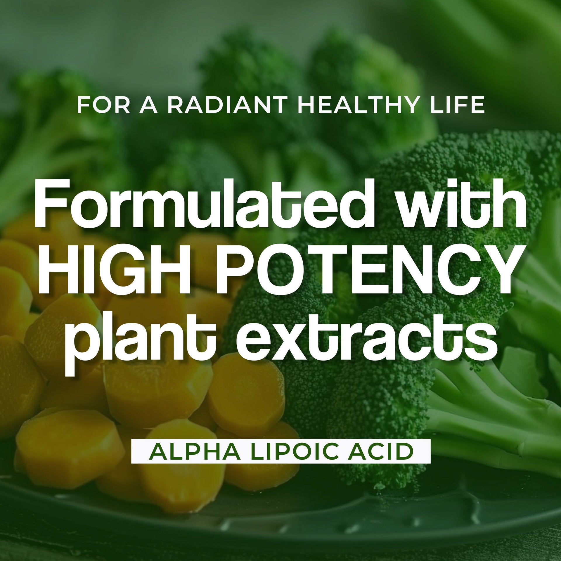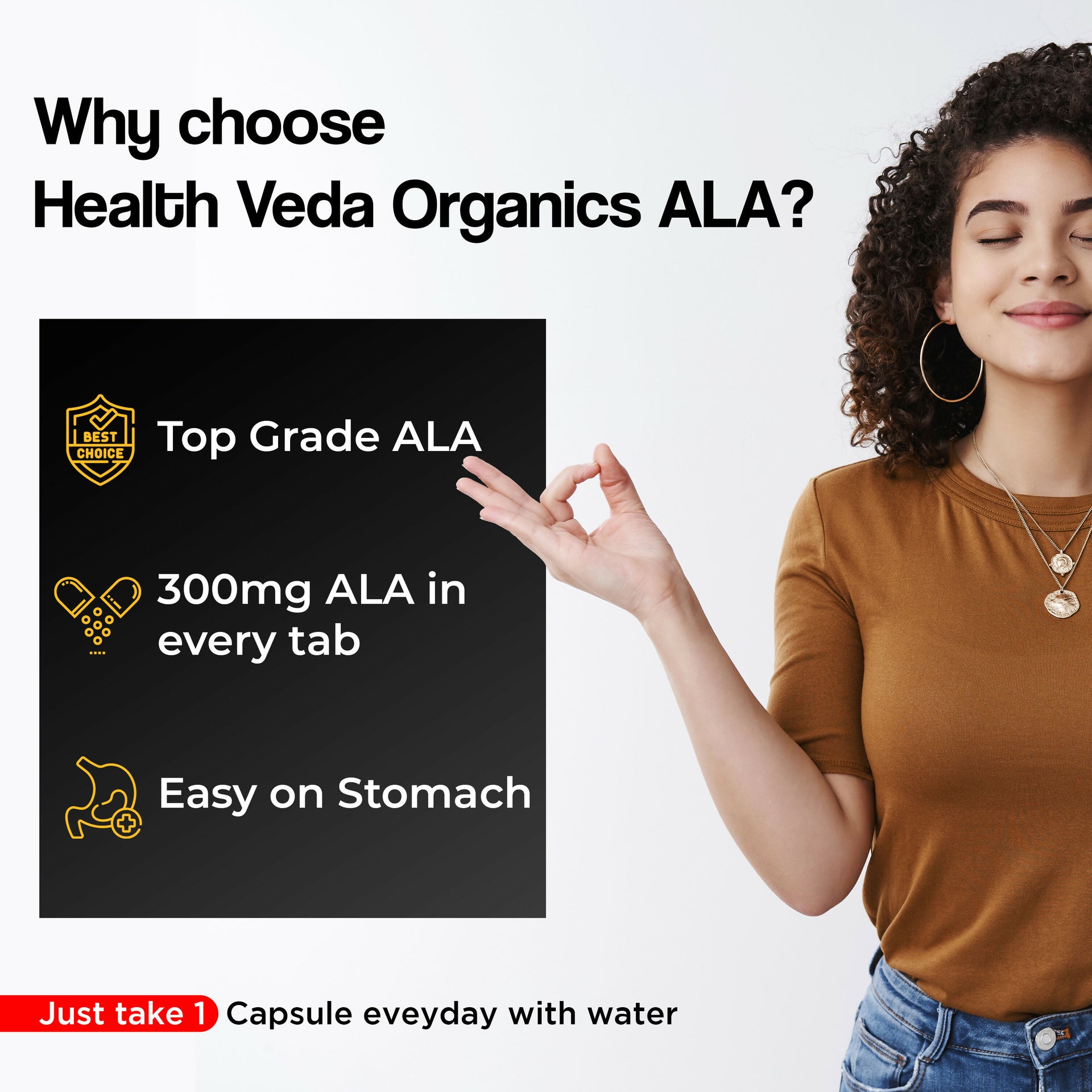 Plant-Based: Health Veda Organics Alpha Lipoic Acid Capsules, a nutritional complement to a healthy lifestyle. These Tablets are vegan, GMP & Non-GMO certified