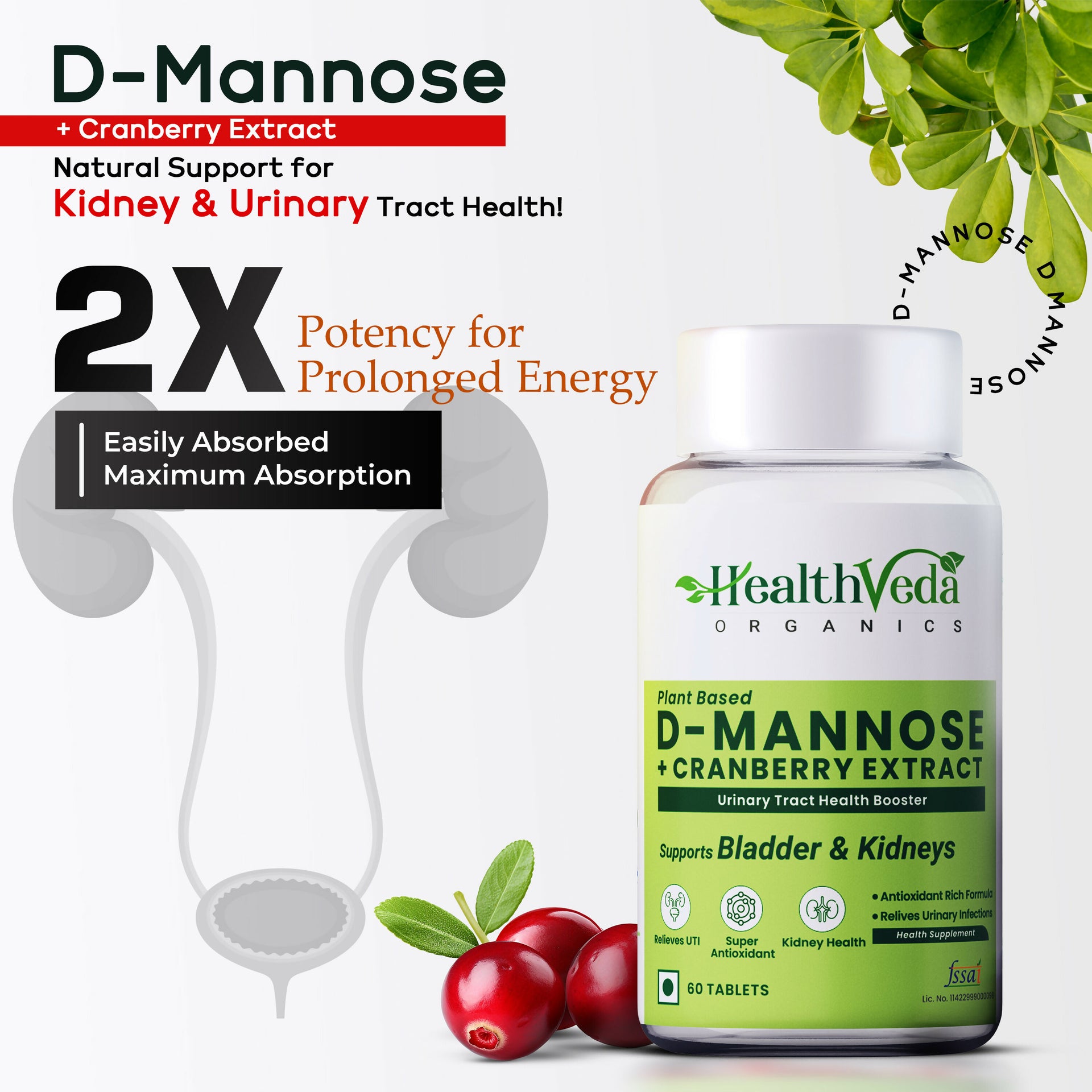 Health Veda Organics D-Mannose + Cranberry Extract Veg Tablet