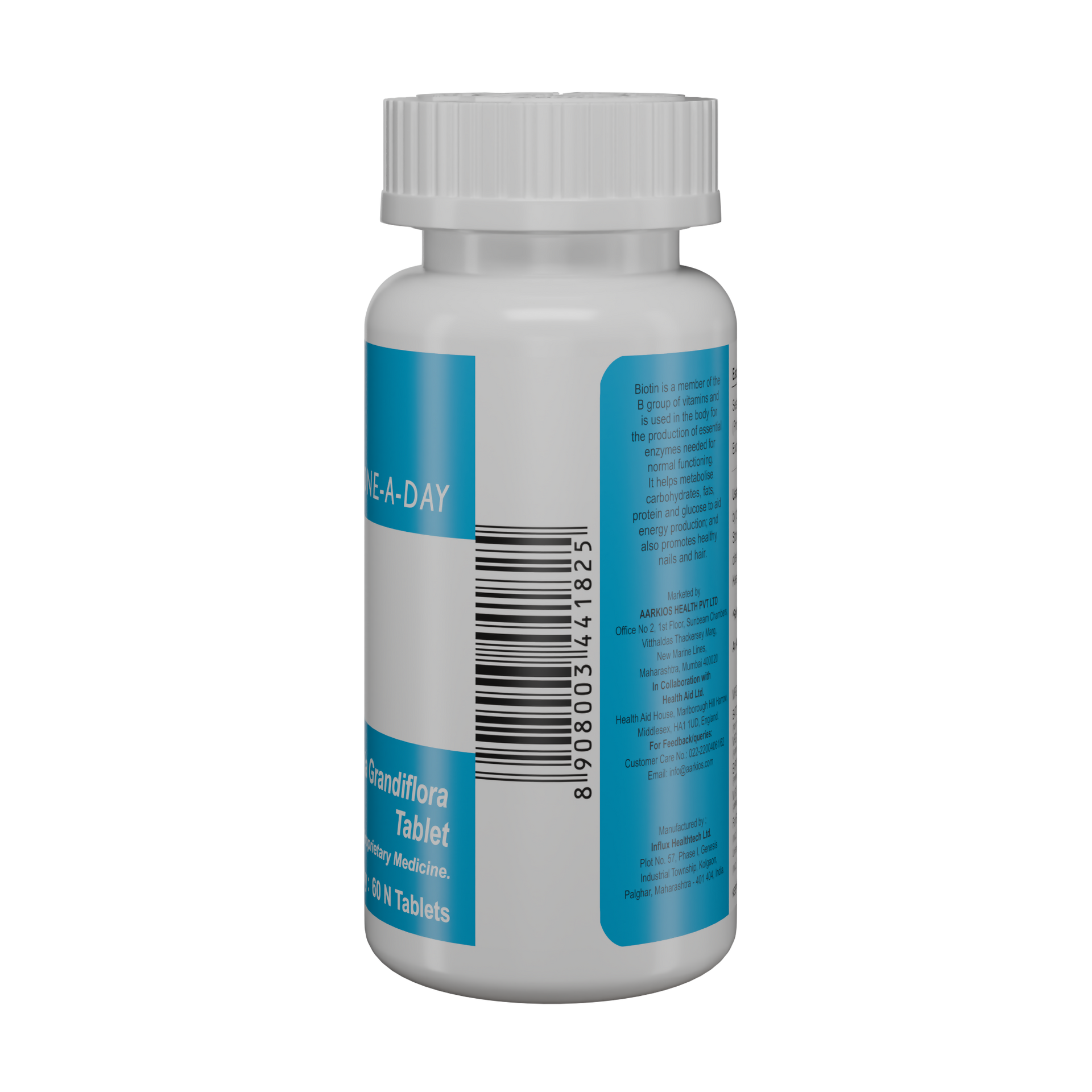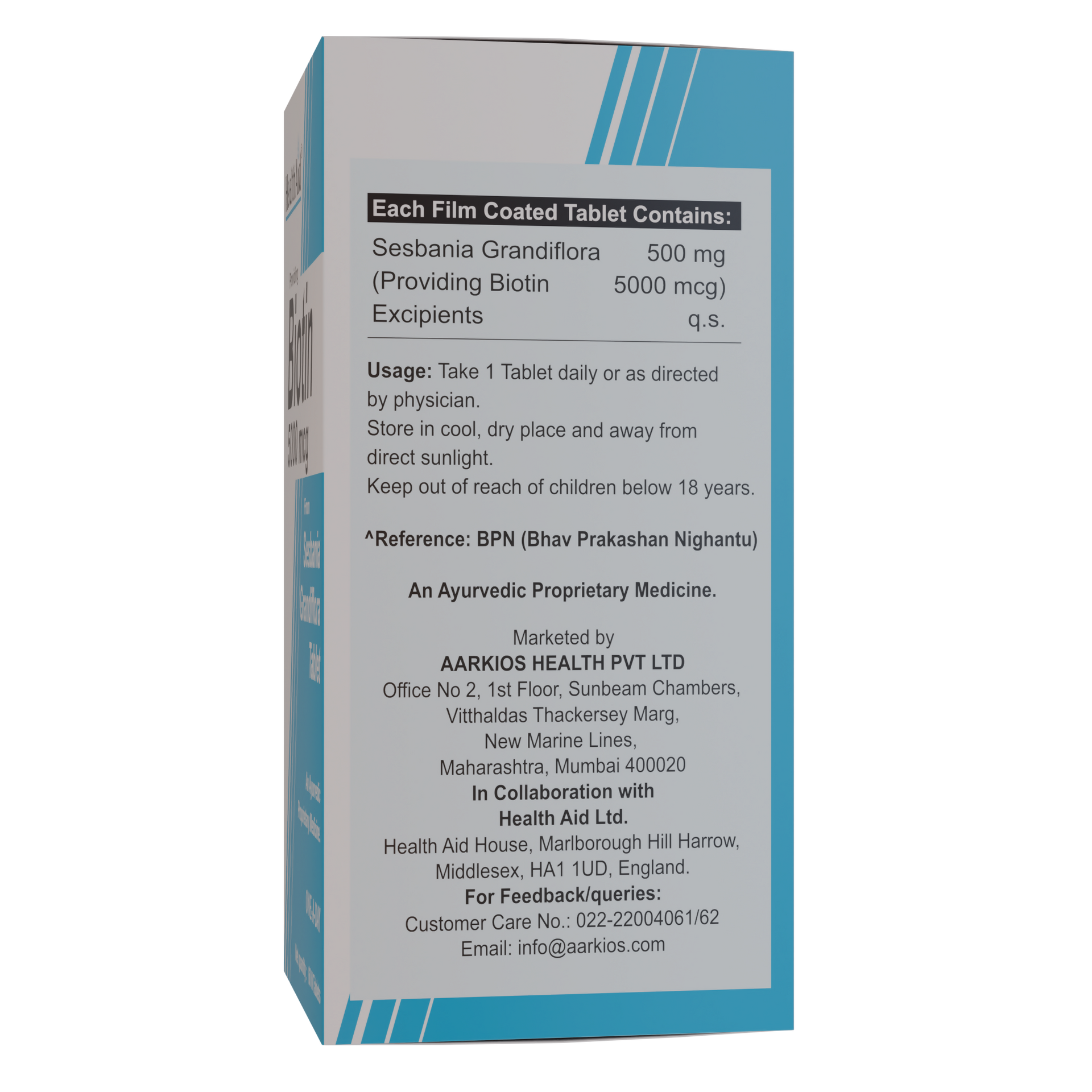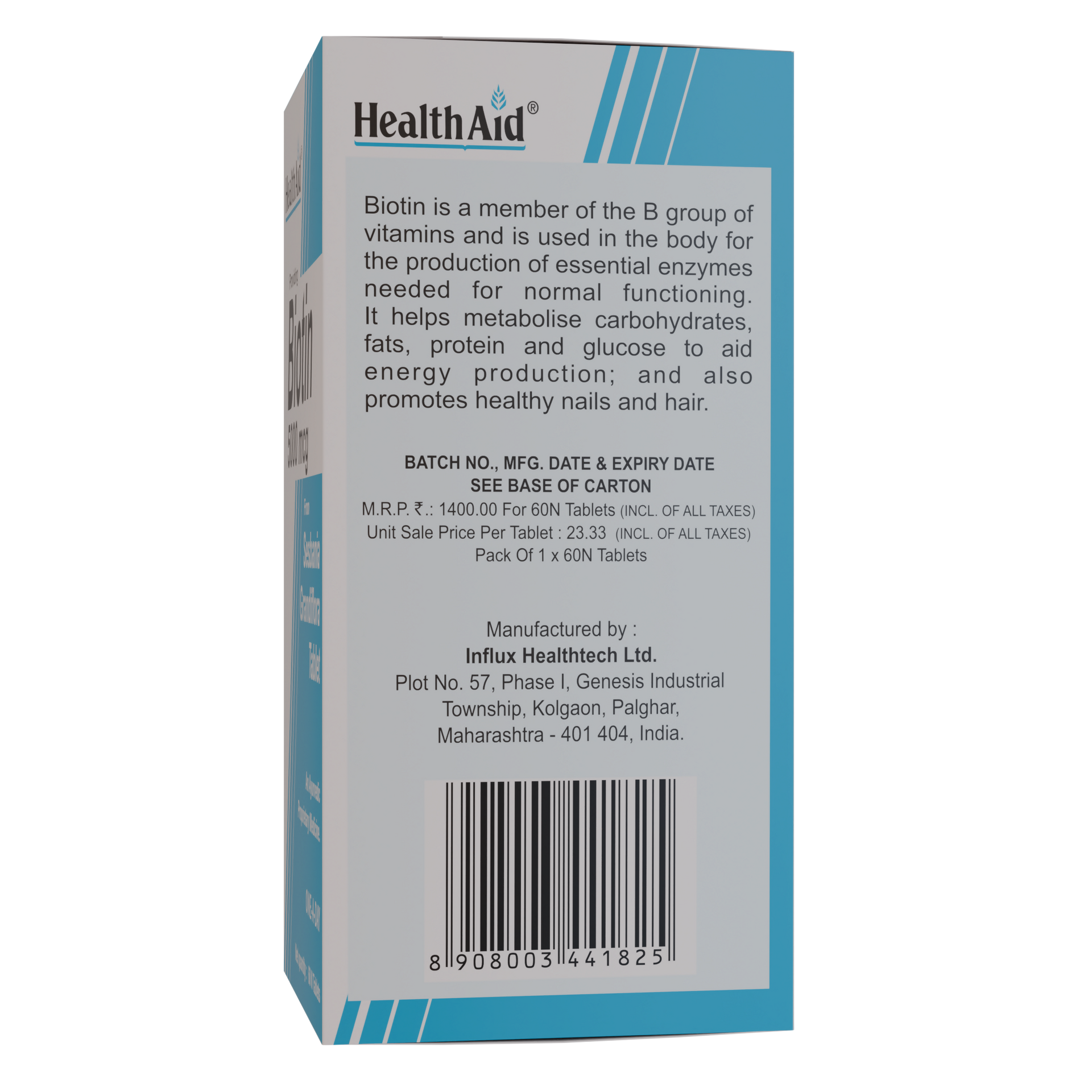 HealthAid Biotin 5000 µg Tablet is best taken with food. Take it in the dose and duration as directed by your doctor. The medicine should not be stopped without the advice of the doctor. It is to be swallowed as a whole and not to be crushed or chewed. Take it regularly and at the same time each day for maximum benefits.