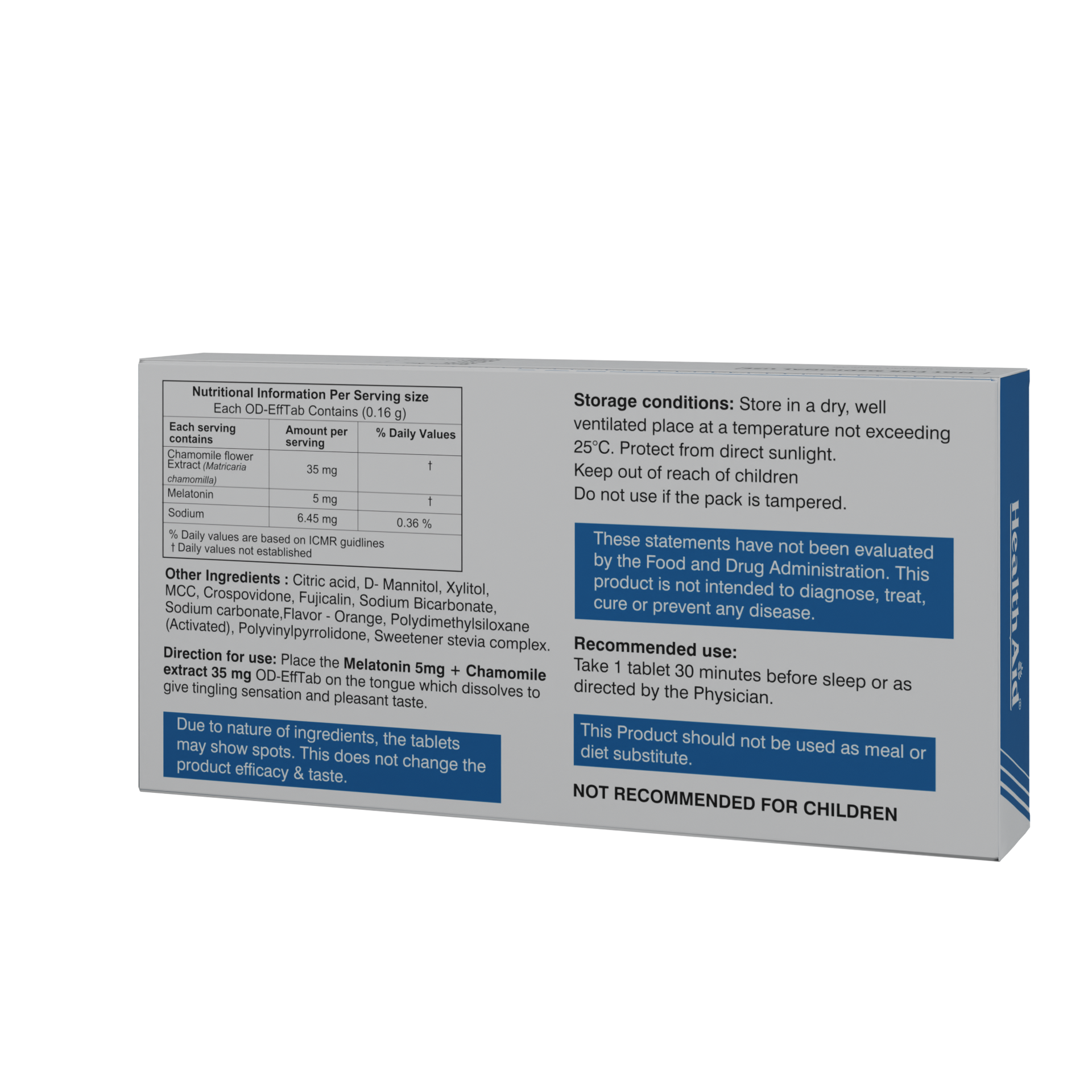 HealthAid Melatonin 5 mg + Chamomile Extract 35 mg Effervescent Tablet hamomile and melatonin both renowned in traditional medication, offer a potent combination for sleep support. Chamomile, known for its sedative and immune-strengthening properties, has been clinically proven to enhance sleep quality. Especially in elderly individuals. Melatonin, the primary hormone regulating circadian rhythms, helps sleep better and improves sleep latency. It also has high water solubility facilitating its smooth diffusion through cell membranes.Key Ingredients:Melatonin, Chamomile.Key Benefits: