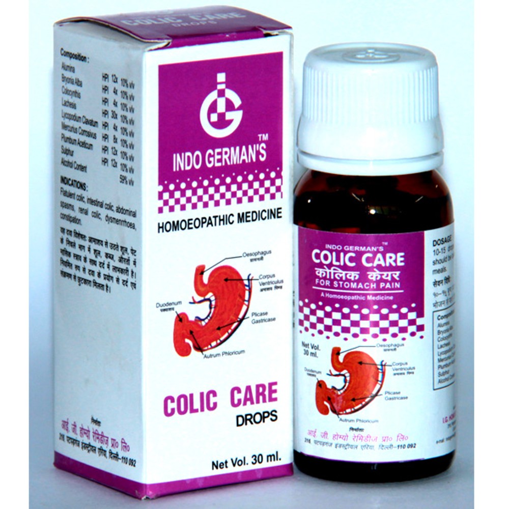 indo german colic care drops 30ml (for intestinal colic, flatulent colic, renal colic, abdominal spa
