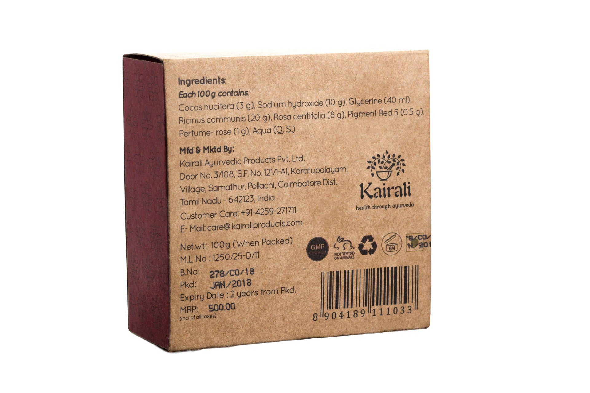 Kairali Beauty Soap is a herbal handmade soap containing natural rose extracts and various healing properties like protection of skin from itching and allergies. It naturally nourishes the skin and improves complexion. It balances the oil content of the skin, removes skin dryness, and provides moisturized skin.