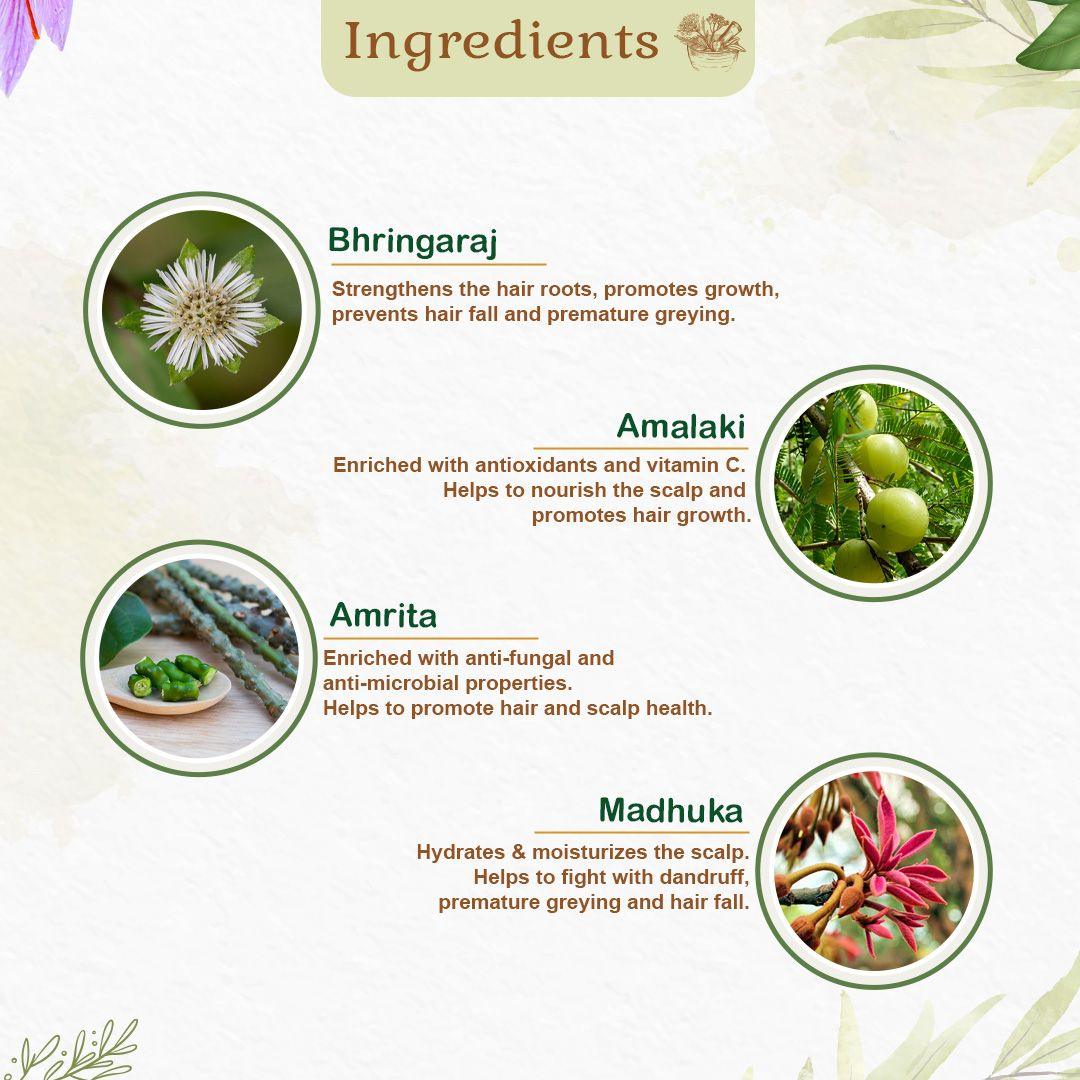 Amla: Enriched with antioxidants and vitamin C. It helps to nourish the scalp and promotes hair growth