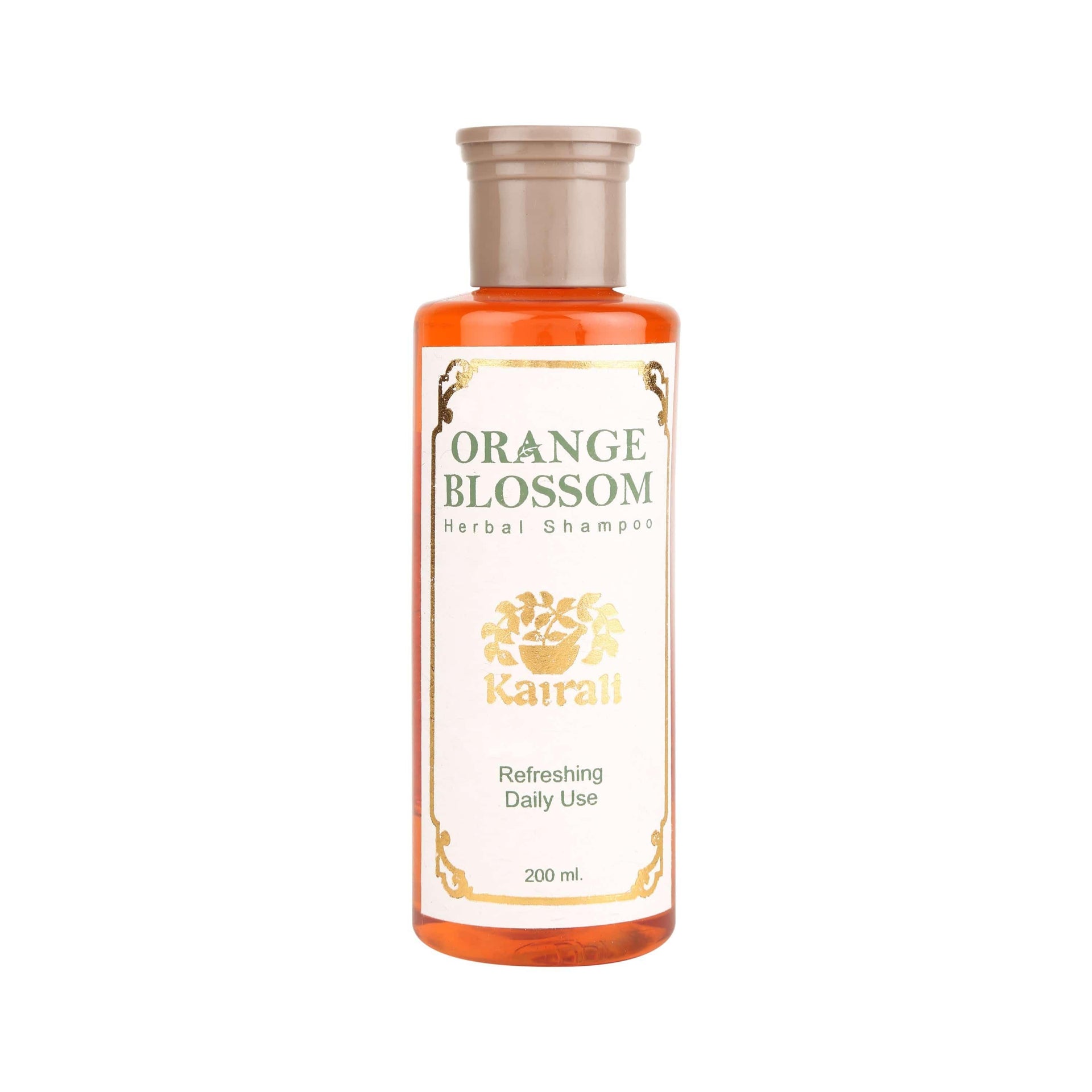 Kairali Orange Blossom Shampoo - The pollution causes deep-rooted damage. Hairfall, split-ends, dandruff, and thinning of the hairline are often caused as a direct or indirect effect of pollution. What one needs is something herbal, so that the rejuvenation process can be started at once. This shampoo strengthens the hair roots, which causes less hair fall. In other words, it works on the cleansing of the scalp, which does the main trick. This shampoo is tested and it is non-allergic. As it is created from natural products, it is sensitive to the skin and thus there is nothing to worry about. Overstyling causes damaged hair. This product replenishes and strengthens the hair in such a manner that it can easily be styled in a variety of ways without much hassle. This shampoo is a boon if you have long been troubled with this problem. This shampoo improves the hair right from the roots is completely natural, and can safely be used.