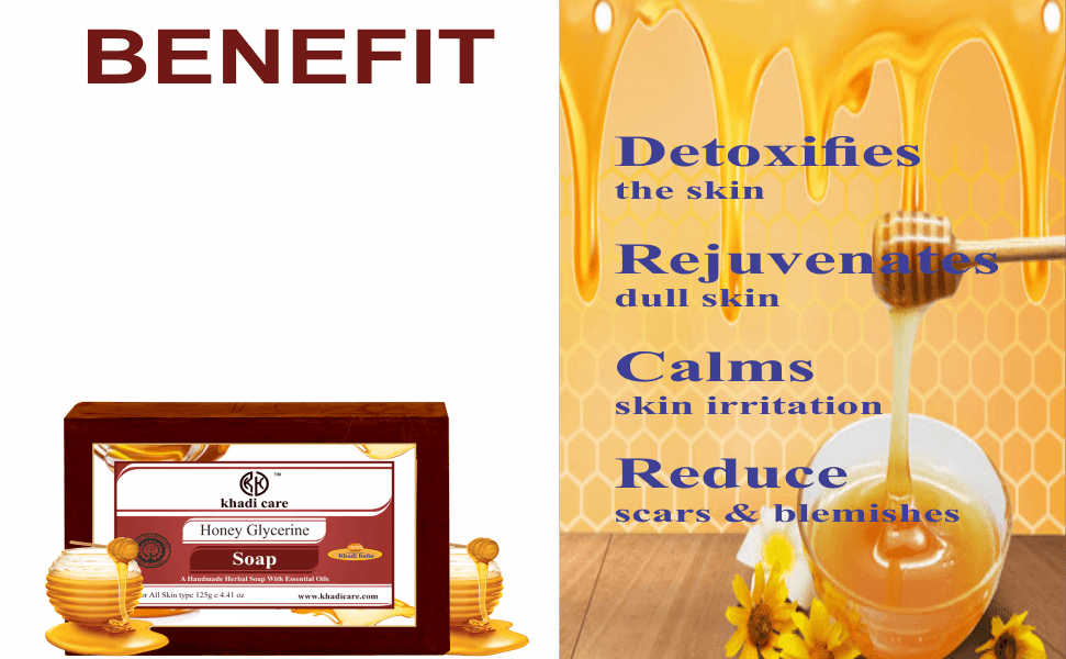 Khadi Care Herbal Honey Glycerine Soap is for all the skin types. Enriched with all natural ingredients like honey and glycerine which are beneficial for the skin. These ingredients add extra moisturization and softness to the skin. It makes the skin smooth and supple. It also adds a glow to the skin making it shiny. This soap is very mild on the skin and can be used on children as well. This soap is not tested on animals.