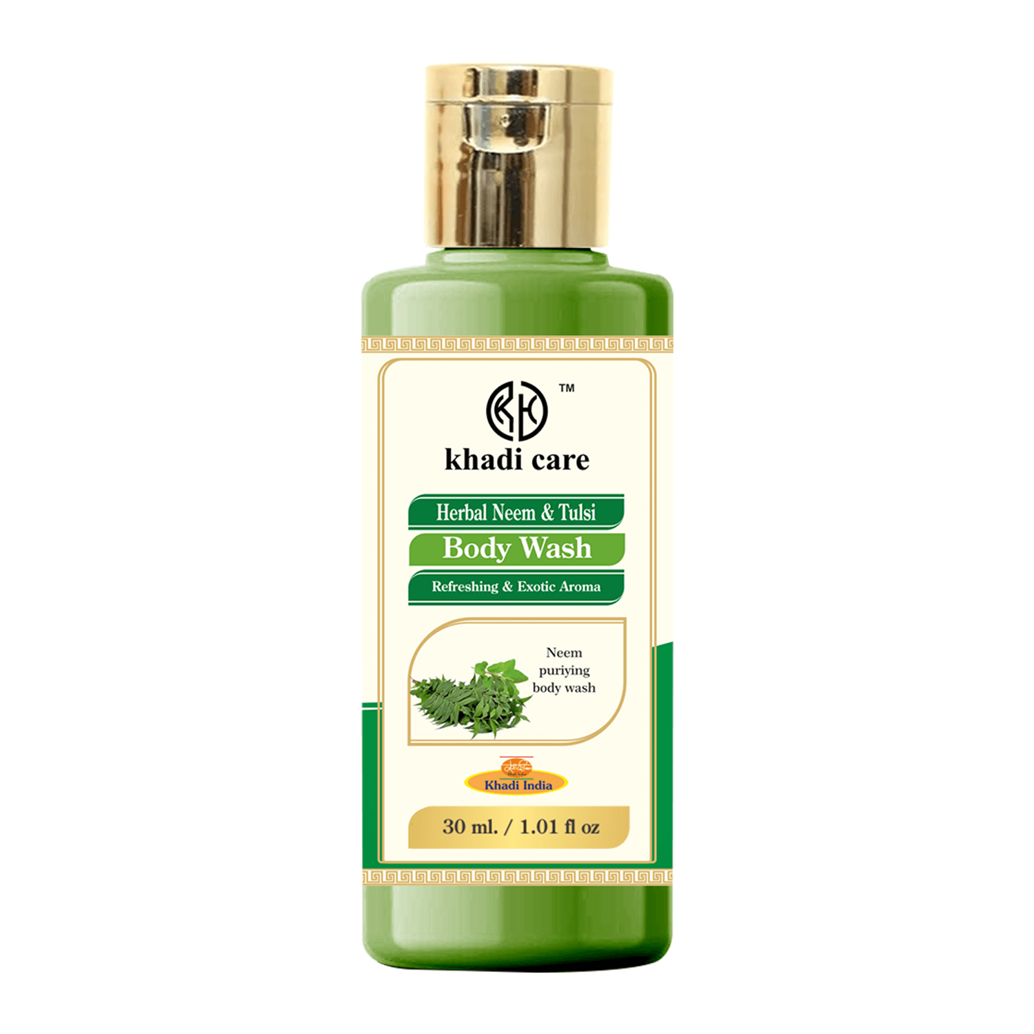 Khadi Care Herbal Neem & Tulsi Bodywash helps to keep skin free from pimple-causing bacteria & thus reduce acne with its antibacterial properties that helpful for boosting collagen & improve skin elasticity to protect skin from aging signs caused by sun exposure & UV radiations. Neem and Tulsi have natural antiseptic properties that could improve the appearance of fine lines & brown spots and speed up the process of removing dead skin cells to reveal healthy & soft skin to protect the skin from further damage. It contains many bioactive compounds and multivitamins that speedup the healing process to improve skin's natural firmness and balance melanin secretion to lighten up dark spots for maintaining softness, suppleness, and radiance on the skin.