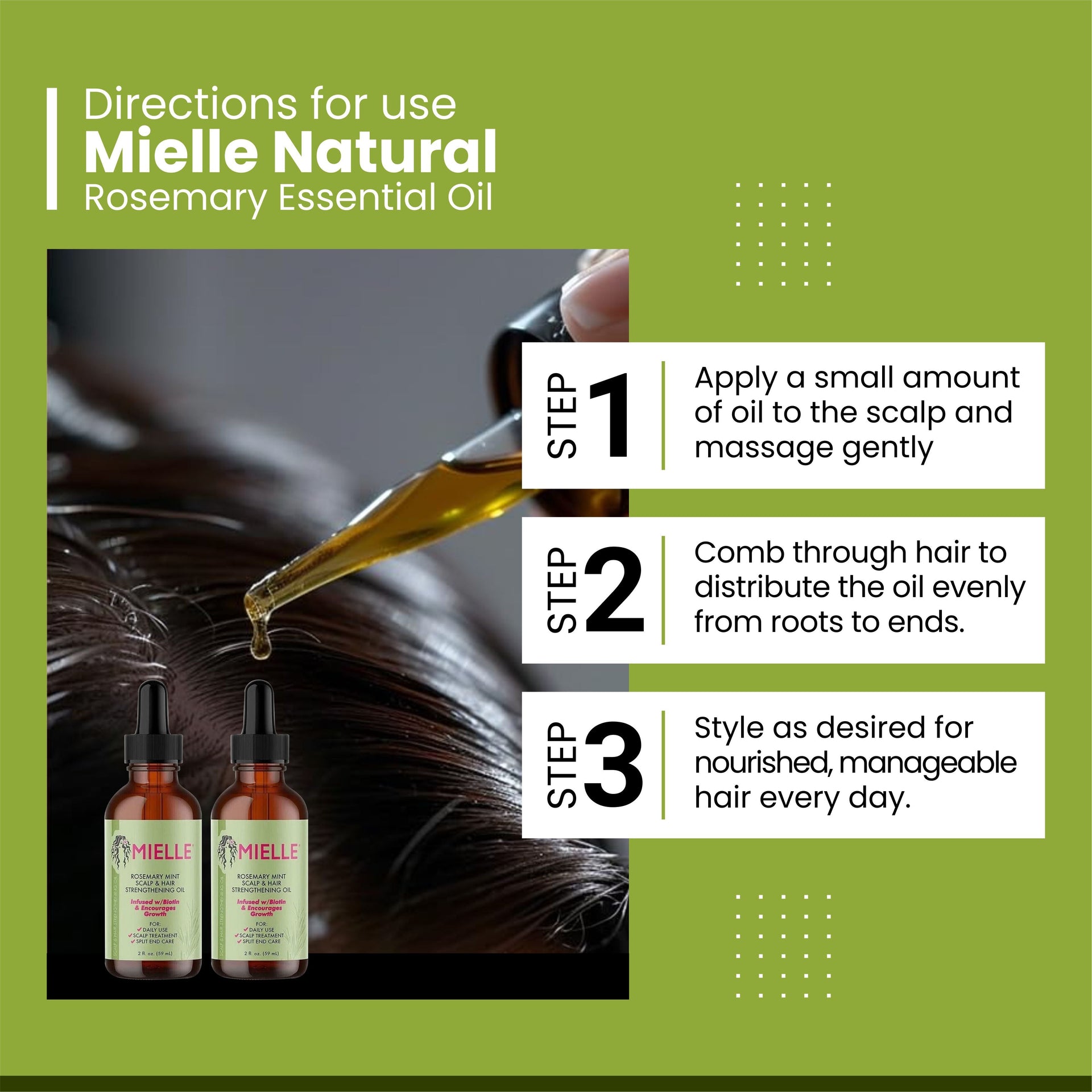 • Rosemary oil has been used for centuries to stimulate hair follicles, improve blood circulation to the scalp, and encourage natural hair growth. Regular use of Mielle Hair Oil can help reduce thinning and support healthy, long hair.