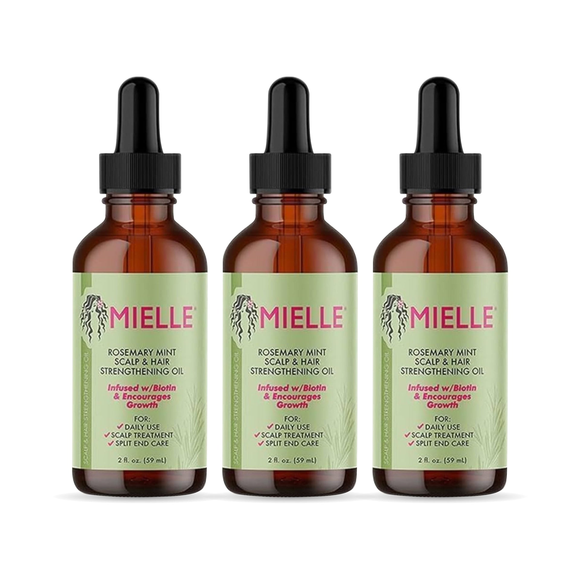 Mielle Rosemary Hair Oil - 3 Bottles - for Healthy Hair, Scalp, Hair Roots -100% Pure & Natural Undiluted 59 ML