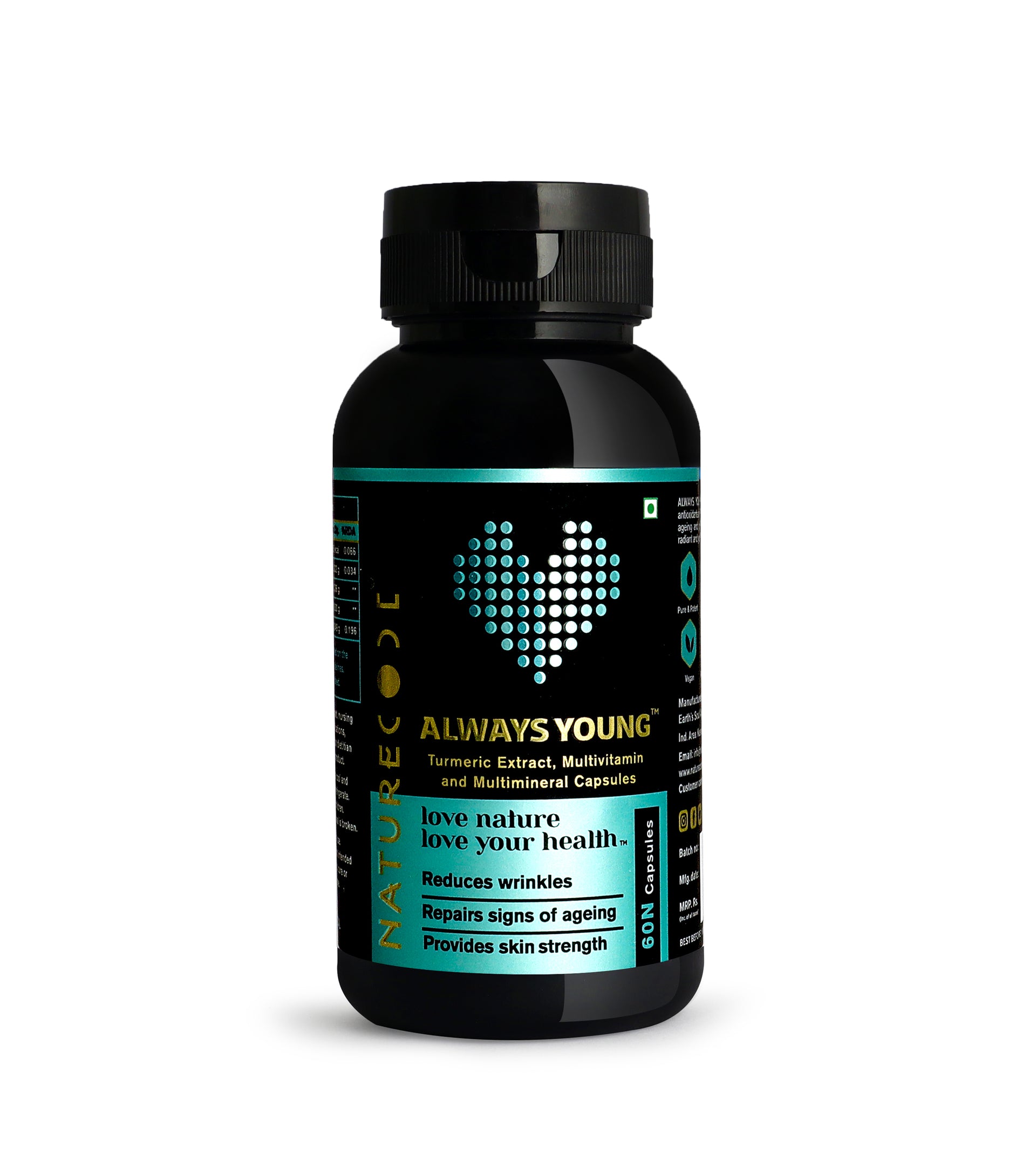 Nature Code Always Young Capsule helps to rejuvenate and restore the skin complexion, making it healthy and beautiful. It is safe for long term use as it has no side effects. It helps provide you with healthy and glowing skin. These capsules help to get rid of dandruff, fungal infection on the scalp, and hair loss and help to regrow hairs. This formulation helps to get control greying hair and other hair related problems.