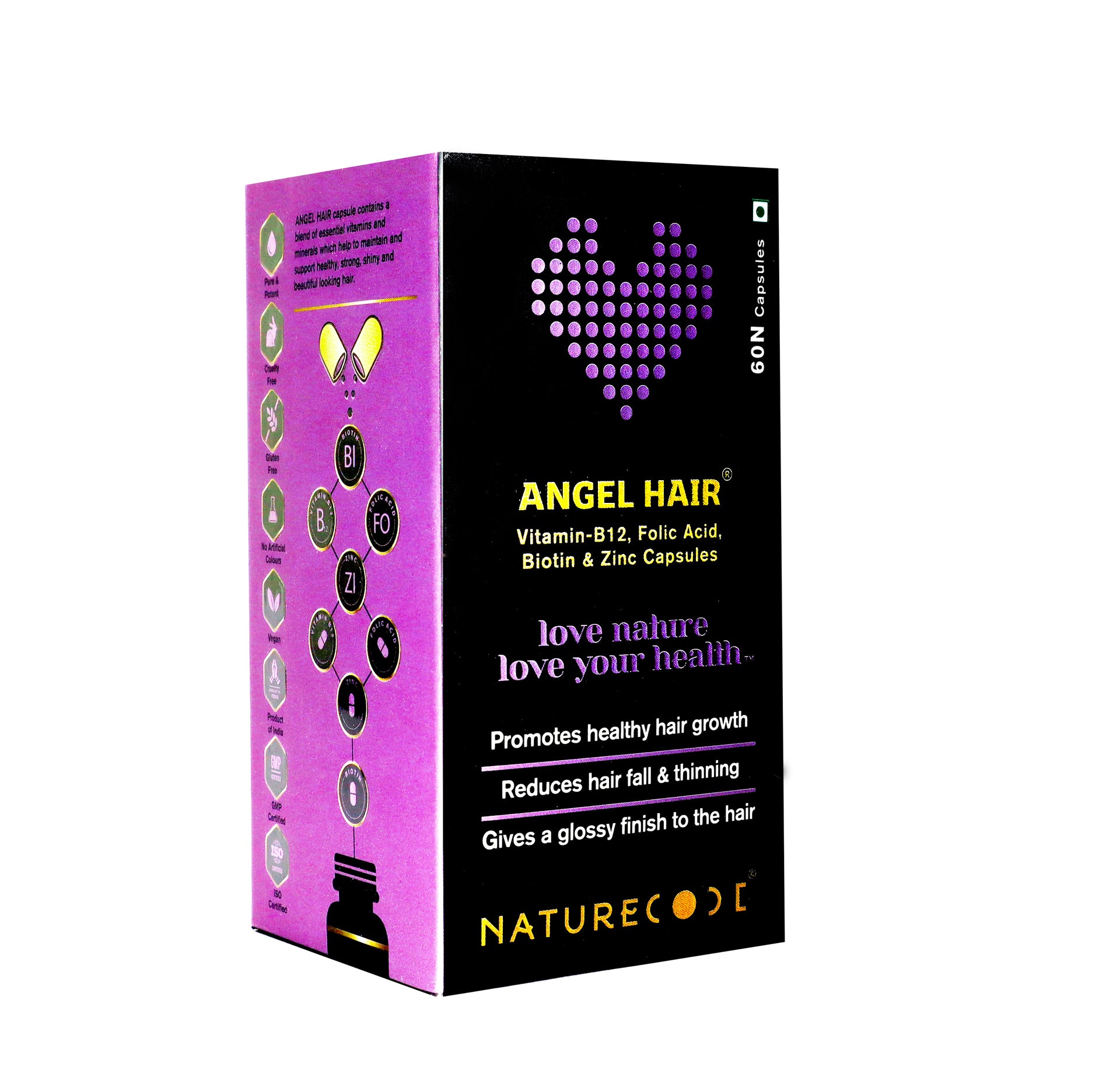 Nature Code Angel Hair Capsule is an advanced herbal hair growth formation that provides essential nutrients to make your hair thick and healthy, softens your hair and provides lustre to hair. These capsules help to get rid of dandruff, fungal infection on the scalp, hair loss and help to regrow hairs. This formulation helps to get control greying hair and other hair related problems. It helps to heal your damaged hair from root to tip. It naturally boosts your hair growth.