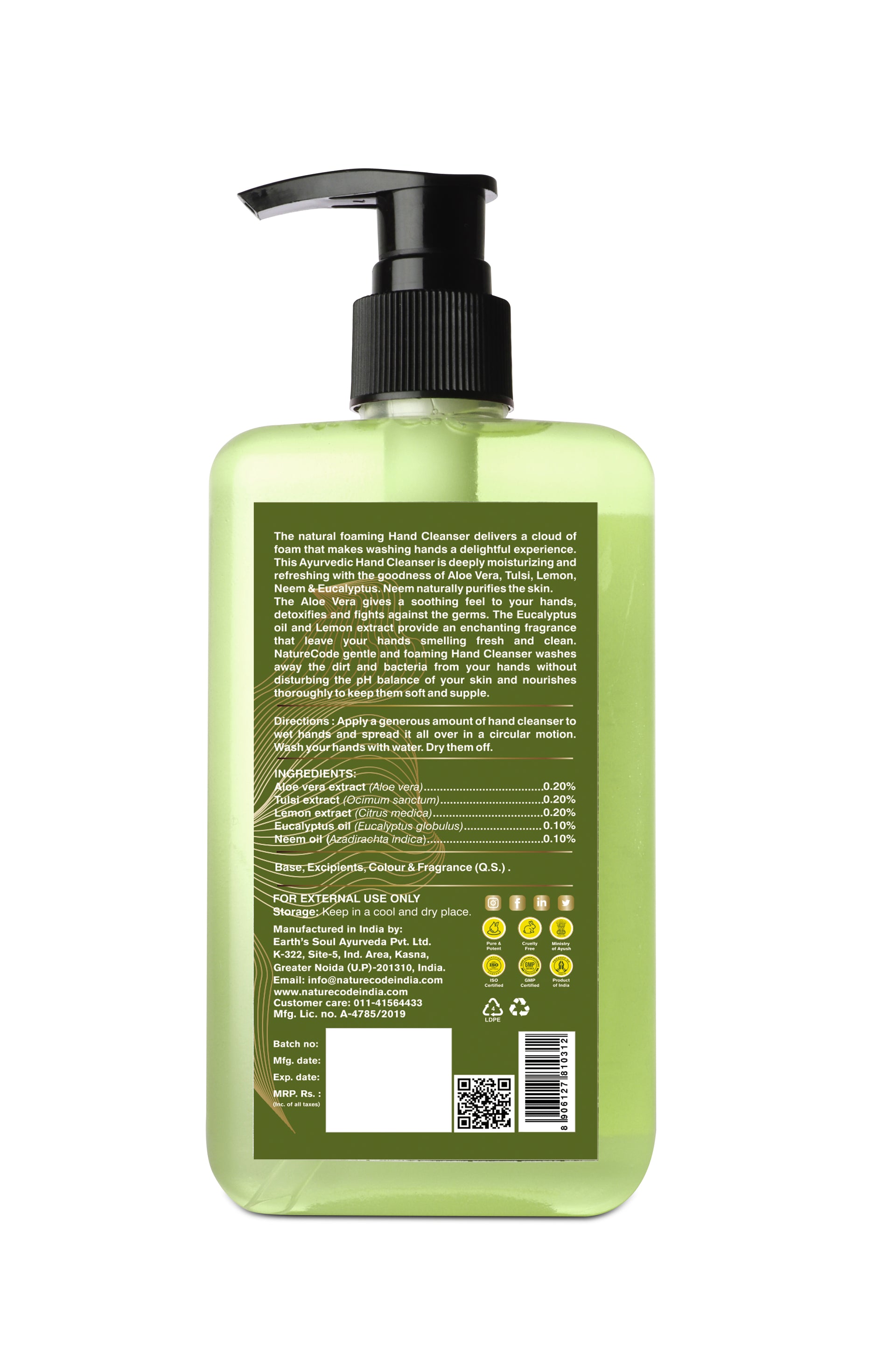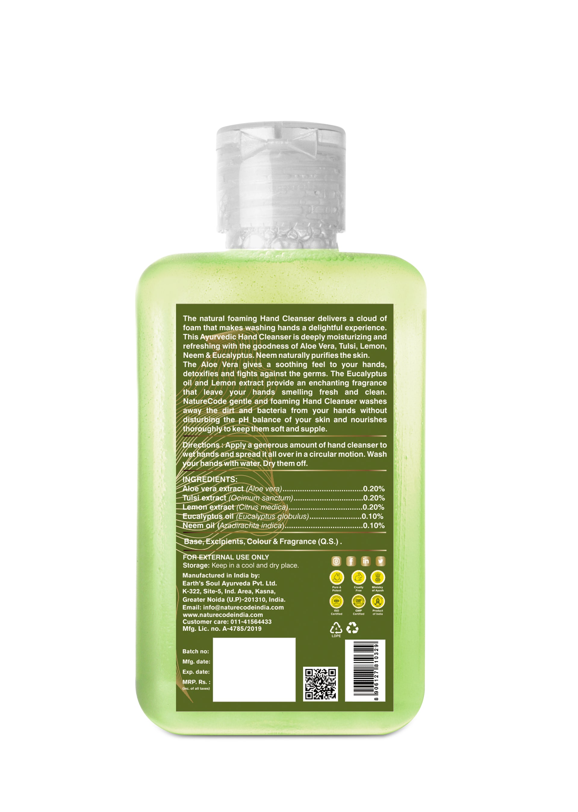 Nature Code Ayurvedic Hand Cleanser is formulated for the whole family's protection. Owing to its healing, antibacterial, antifungal and anti-inflammatory properties, tulsi benefits the skin and leaves it nourished naturally. It contains the properties of aloe vera that help to moisturise and nourish the hands while cleaning.