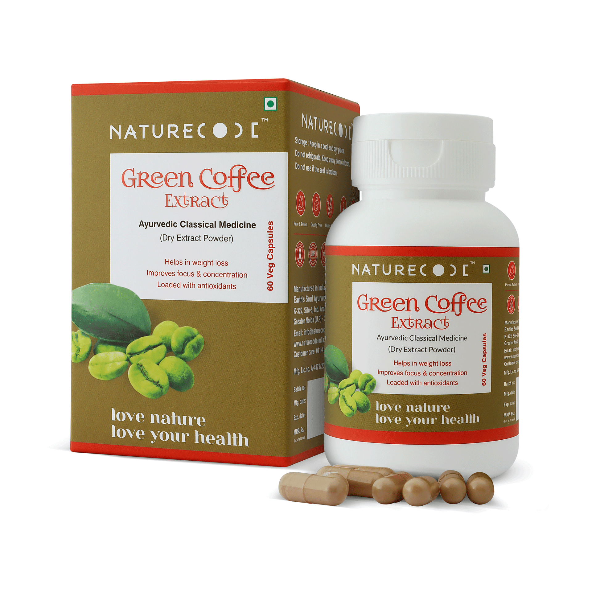 Nature Code Green Coffee Extract Veg Capsule increases the release of fat-burning enzymes, raising the fat burning capability of the body. Moreover, it acts as a great natural detoxifier for the liver and reduces bad cholesterol.