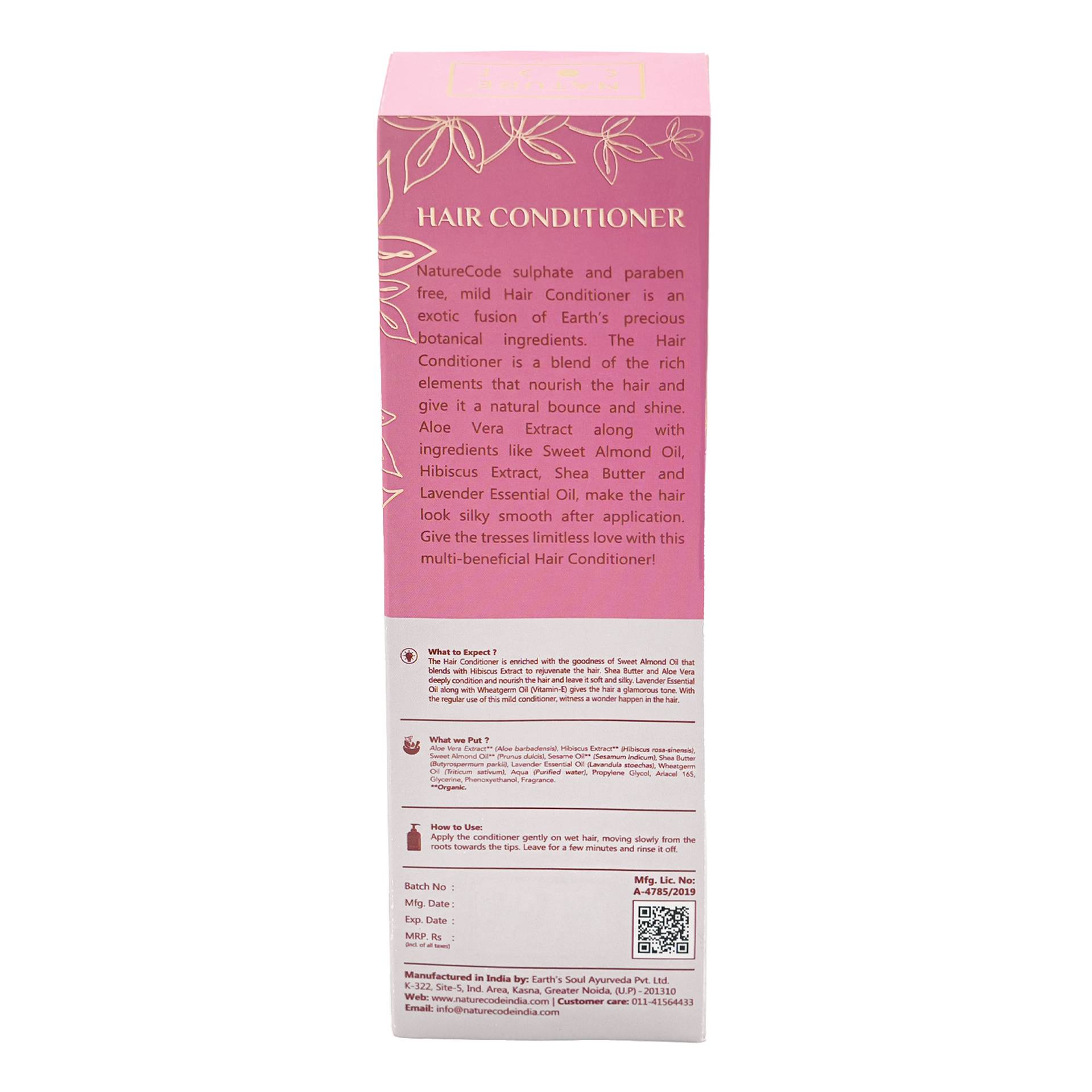 Naturecode’s sulphate and the paraben-free hair conditioner is an exotic fusion of earth’s precious botanical ingredients. The hair conditioner is a blend of rich elements that nourish the hair and give it a natural bounce and shine. Aloe vera and ingredients like sweet almond oil, hibiscus extract, shea butter, and lavender essential oil make the hair look silky and smooth after application.