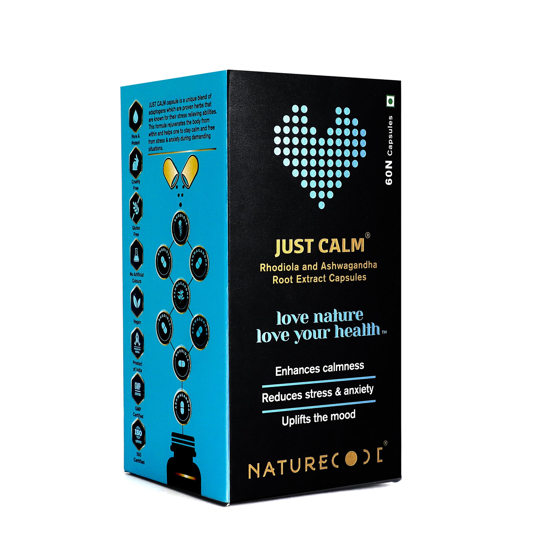 Nature Code Just Calm Capsule is made using ashwagandha that brings an organic supplement that will provide the support needed to live a healthy and happy life. With 500 mg of Ashwagandha Extract per serving standardized to 2.5% withanolides, (HPLC-grade) these premium organic root powder capsules will help live stress and anxiety-free life.