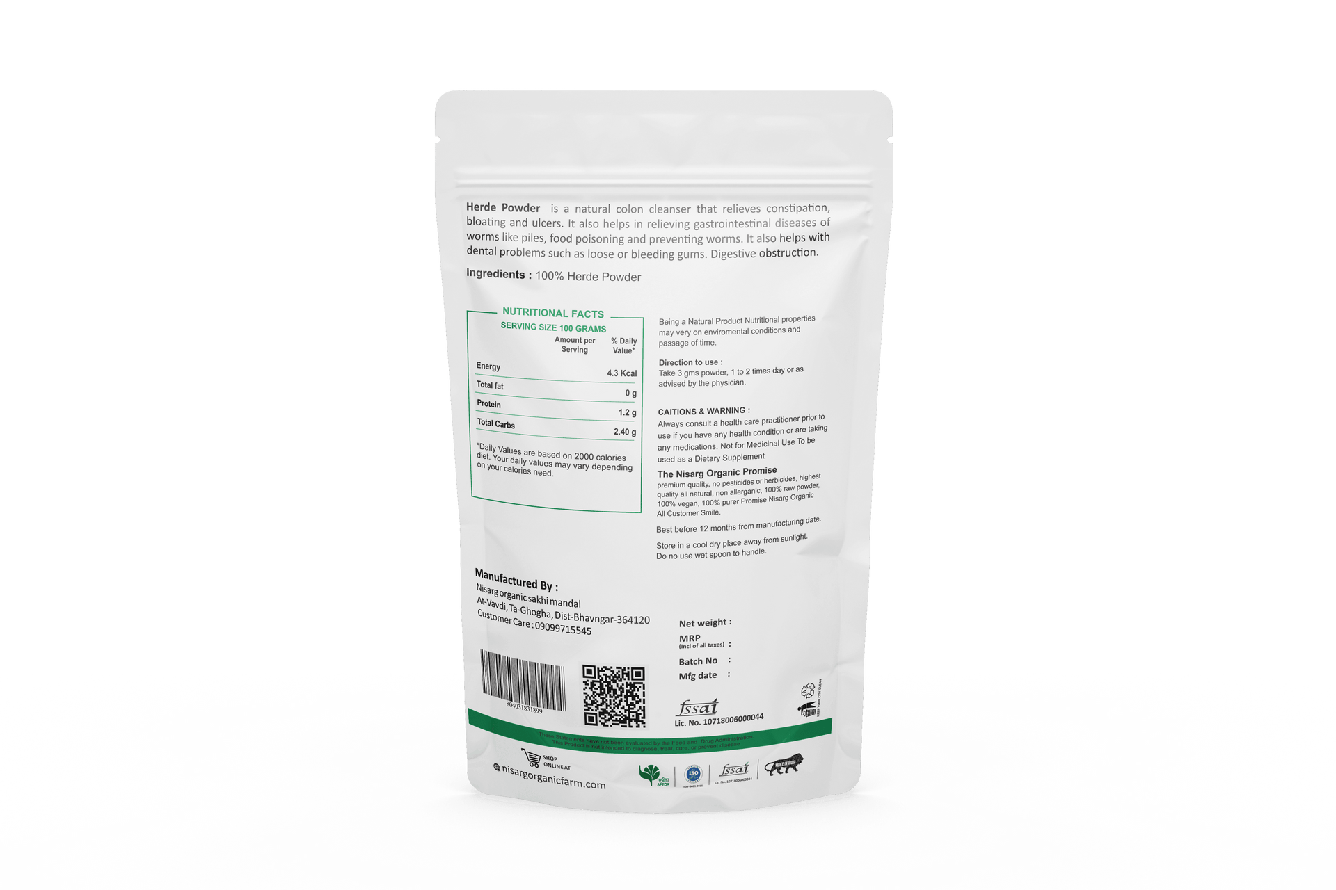 Nisarg Organic Farm Harde/ Haritaki Powder is made from dried and ground Haritaki fruits. The powder is light brown to slightly greenish in color and has a characteristic taste that can be described as a mix of bitter, astringent, and slightly sweet flavors. It has been used for centuries in Ayurvedic medicine for its potential to balance the three doshas (Vata, Pitta, and Kapha) and promote overall well-being.