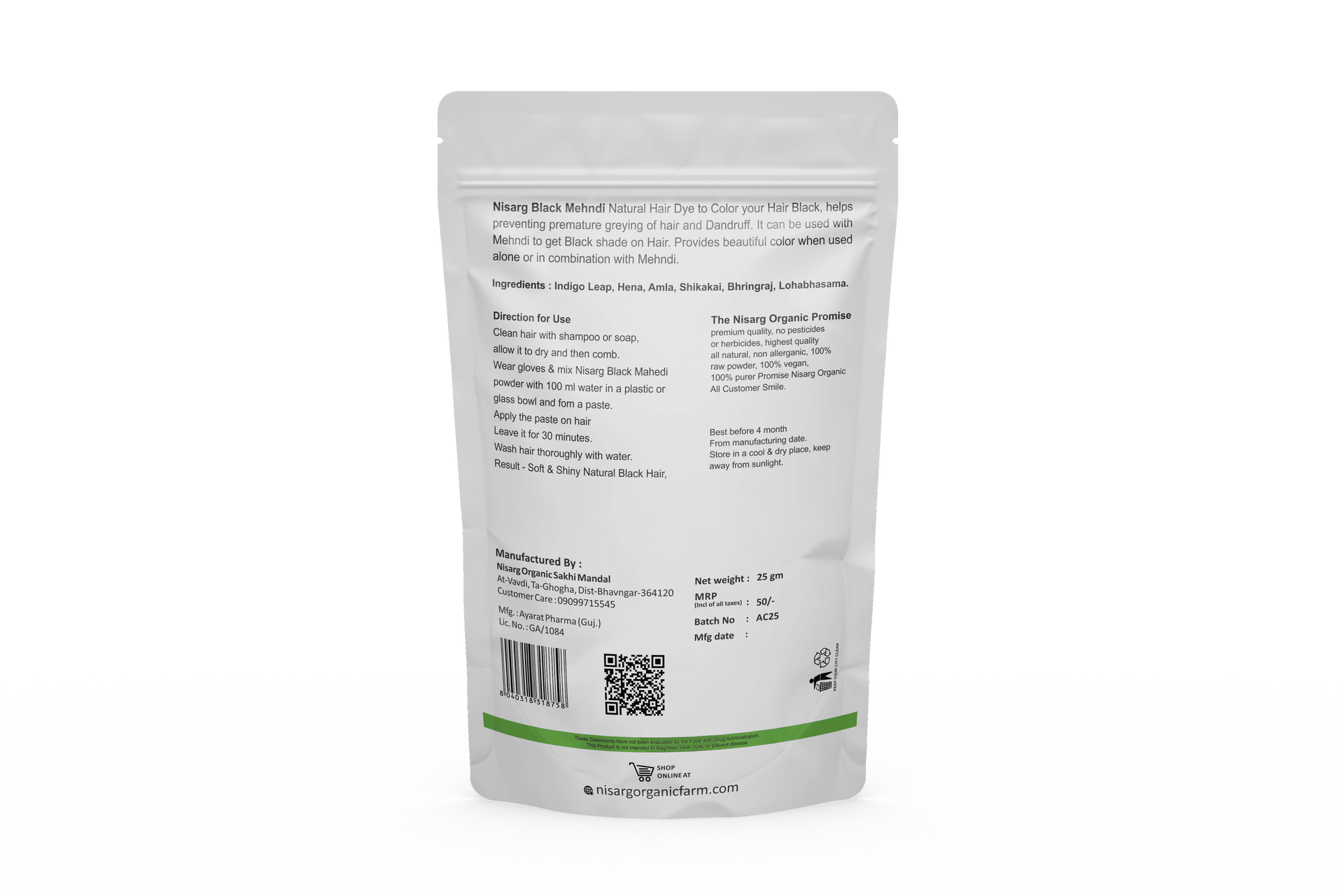 Nisarg Organic Farm Herbal Black Mehndi is the perfect solution for natural, nourishing hair colour. Made from pure Black Mahedi Powder, this colour provides a deep, rich black hue that will make your hair look darker and shinier. Packed with herbal ingredients, Nisarg Black Mahedi Powder can help prevent hair fall, treat itchy scalp, and provide incredible nourishment to dry, thinning hair. Get the perfect natural colour and nourishment with Nisarg Black Mahedi Powder today!
