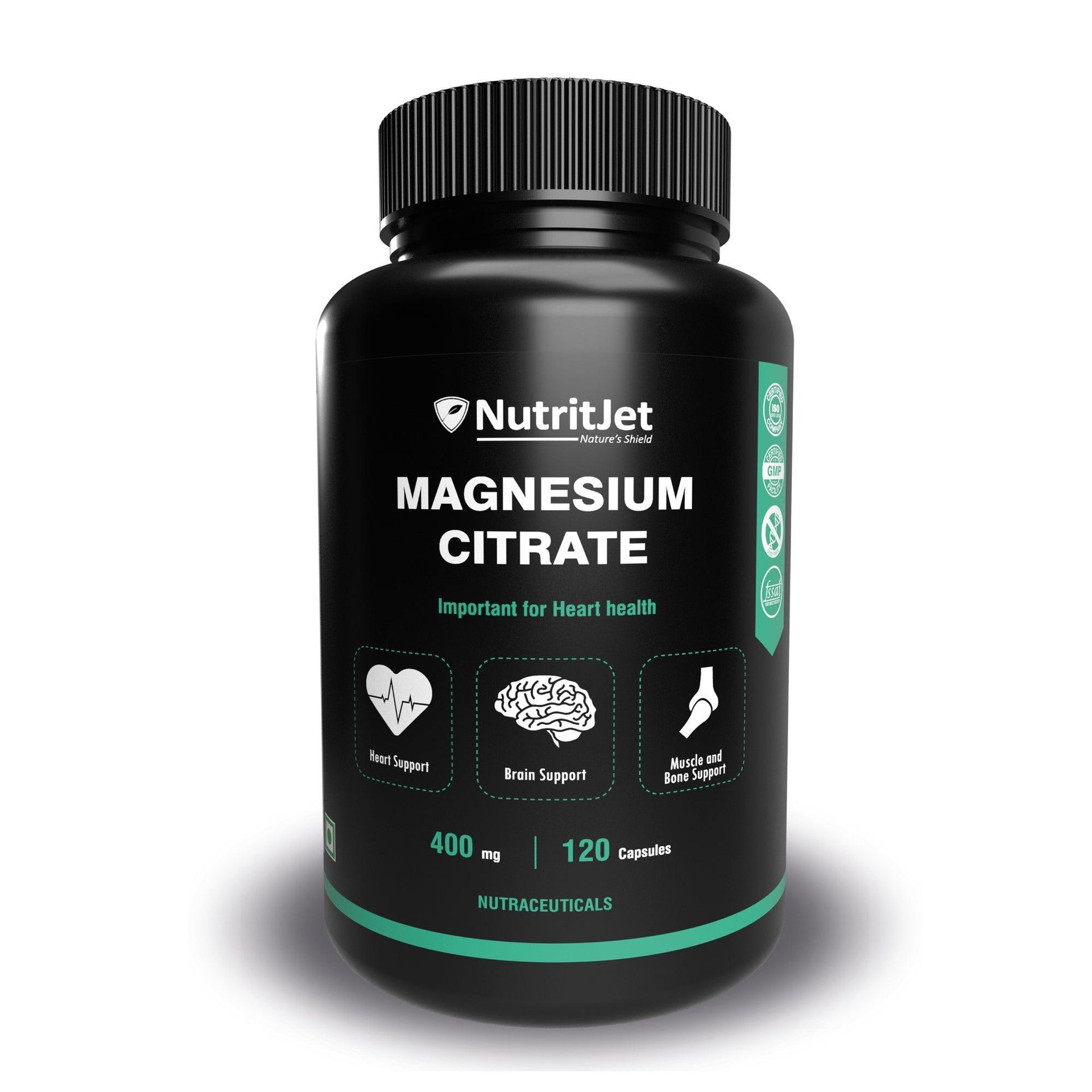 NutritJet Magnesium Citrate Capsule provides the goodness of magnesium, which is central to a healthy heart rhythm as it is involved in transporting electrolytes. It is also beneficial for brain and muscle support. Besides, magnesium helps your body maintain healthy levels of GABA, allowing more restorative sleep.