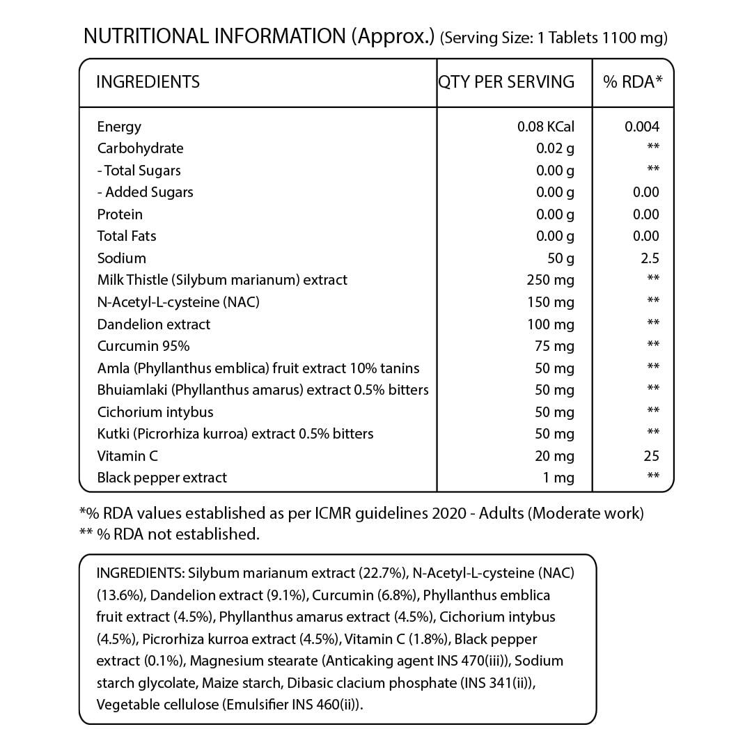 • N-Acetyl L- Cysteine: It is a potent antioxidant and a precursor to glutathione, which promotes natural detoxification of the liver.