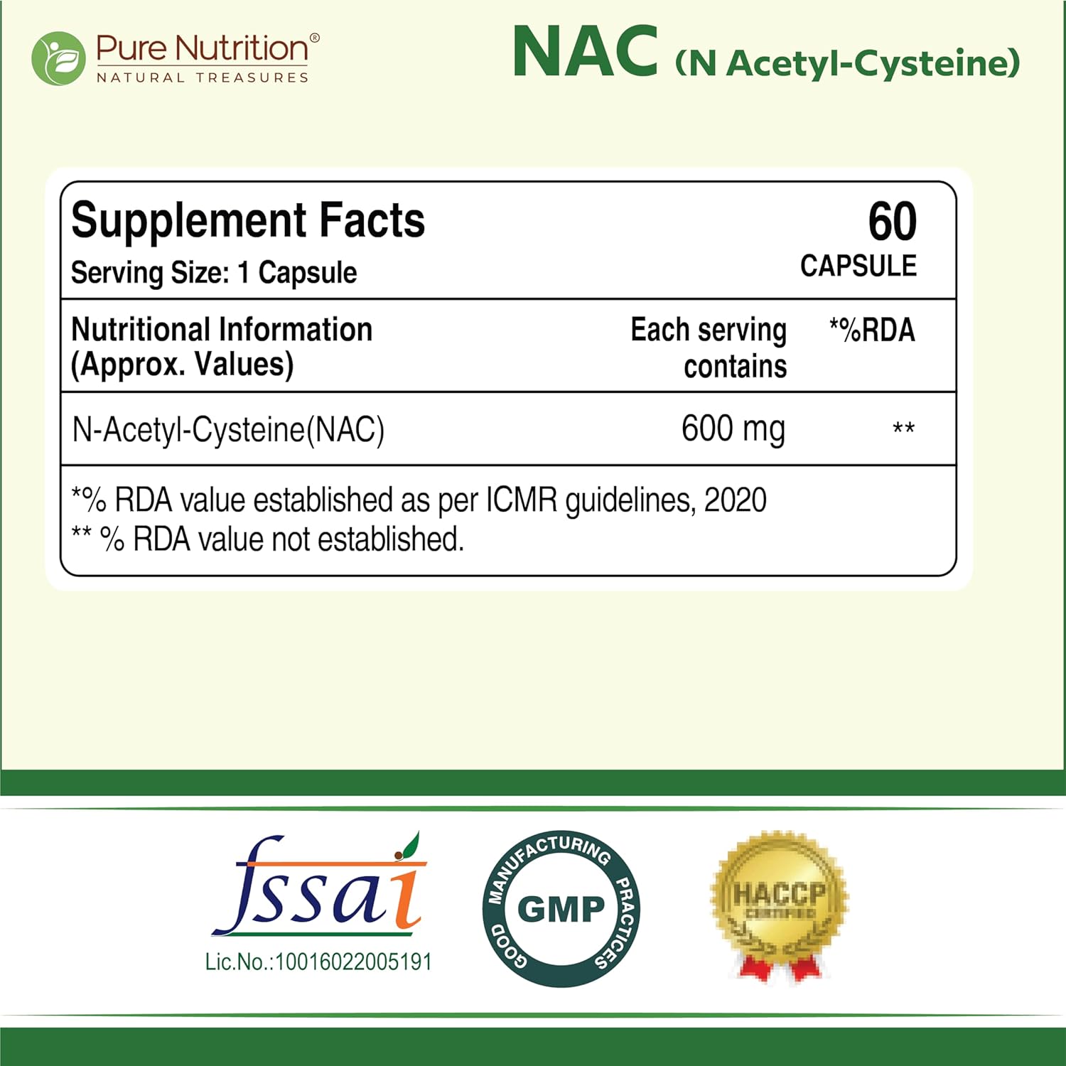 - Boosts Immunity: Pure Nutrition NAC (N-Acetyl L-Cysteine) supplement strengthens the immune system by supporting the production of glutathione, a key antioxidant that protects cells from damage.
