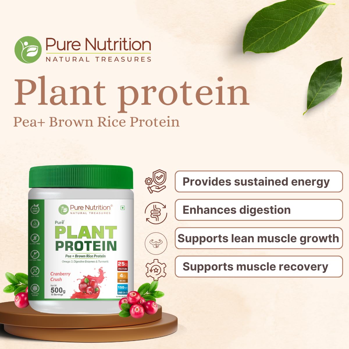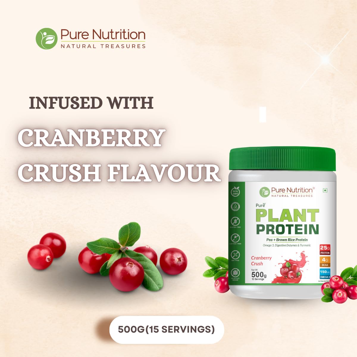 Pure Nutrition Plant Protein Powder - Cranberry Crush combines high-quality plant proteins with an antioxidant-rich berry blend to provide a powerful nutritional boost. Designed for active lifestyles, it aids muscle recovery, supports immune function, and enhances energy levels. With a delicious berry flavor, it’s a fantastic option for post-workout nourishment or a daily protein boost.