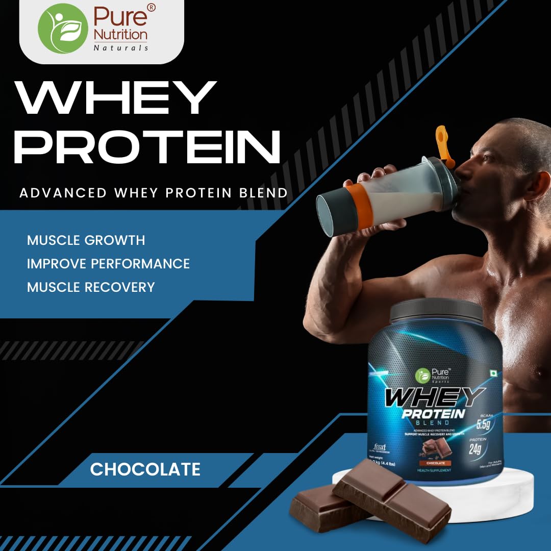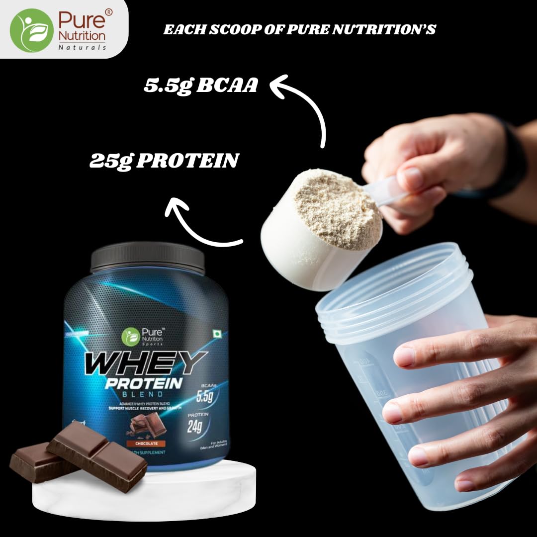 Pure Nutrition Whey Protein Blend is made from natural ingredients and contains a blend of both Whey Protein Isolate and Whey Protein Concentrate. The protein powder supports your body's needs for more energy, stamina, lean muscle mass gain, and quick recovery. This protein powder is devoid of contaminants and artificial substances. In addition, it contains 5.5 g BCAA, which helps avoid muscle wastage and 24 grams of protein per scoop.
