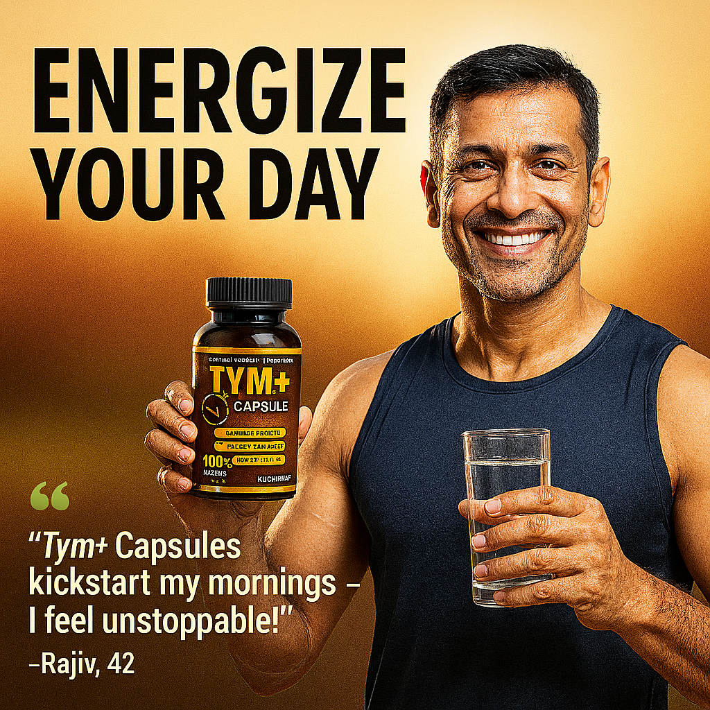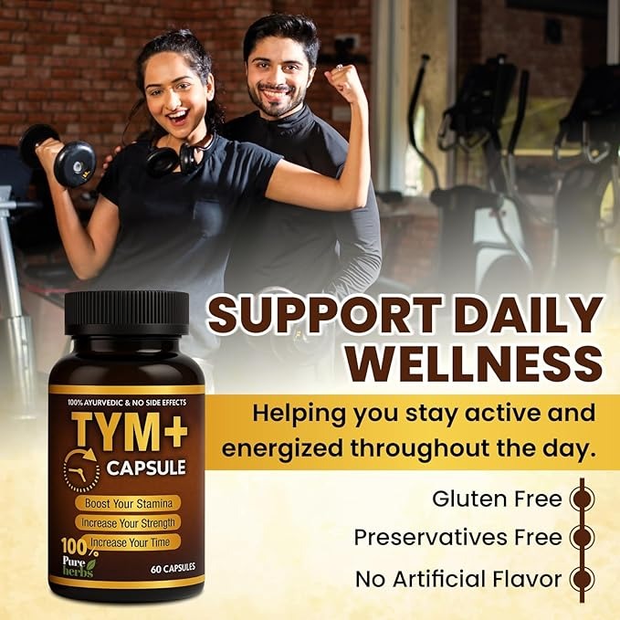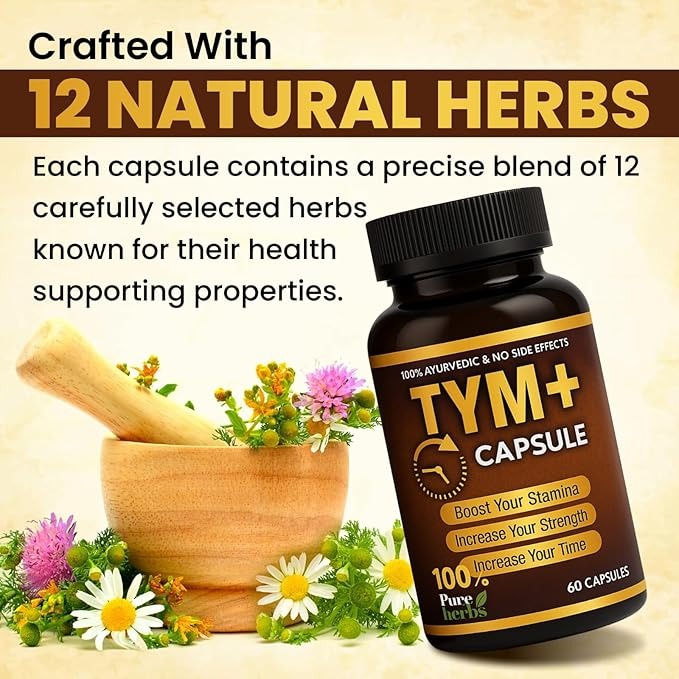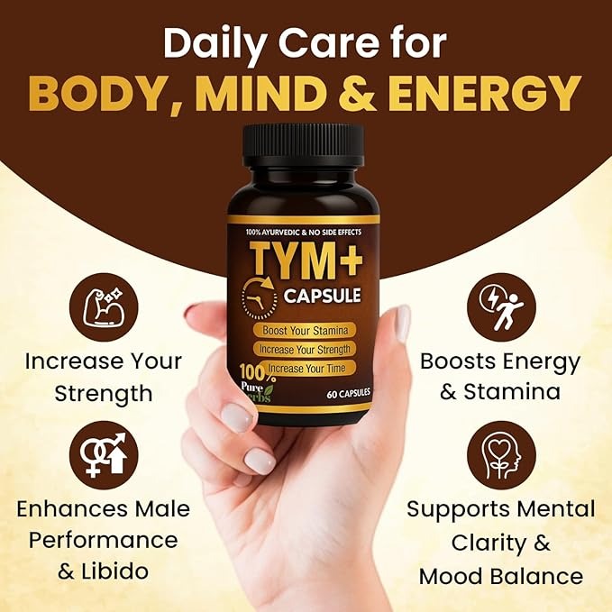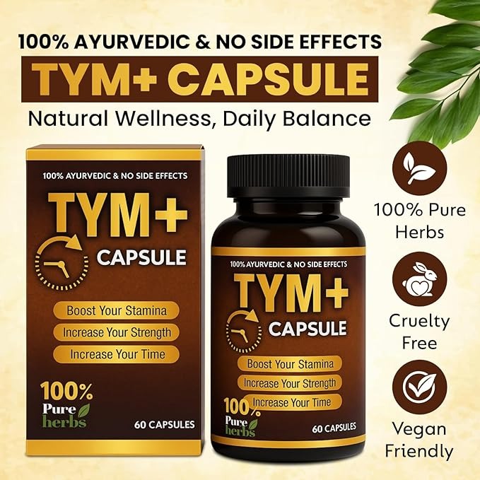 Rudra Mantra Tym Plus+ Capsules, a powerful blend of 100% Ayurvedic and pure herbal ingredients. Formulated to support stamina, strength, and endurance, Tym Plus+ is designed for those who demand more from life—physically, mentally, and energetically.