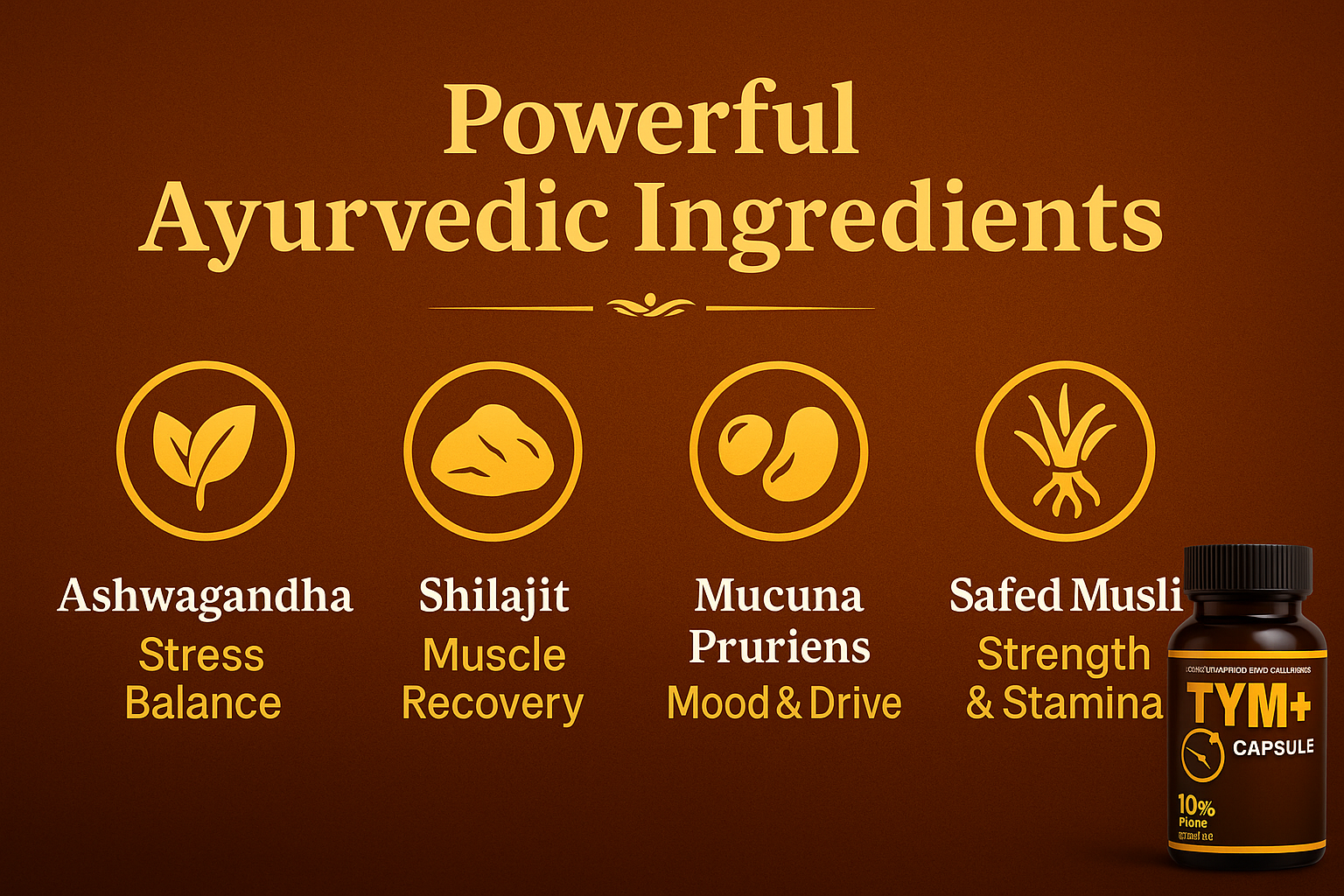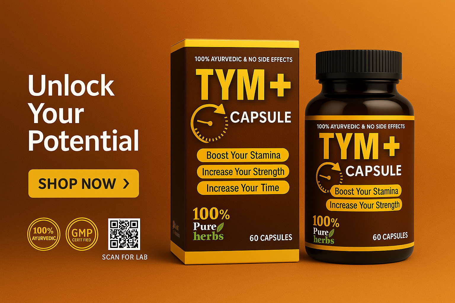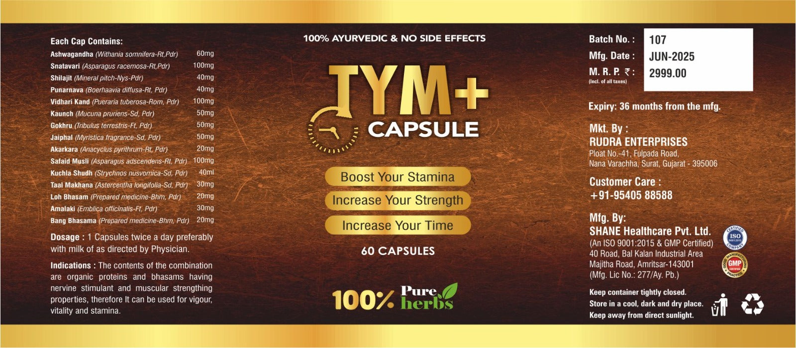 Rudra Mantra Tym Plus+ Capsules, a powerful blend of 100% Ayurvedic and pure herbal ingredients. Formulated to support stamina, strength, and endurance, Tym Plus+ is designed for those who demand more from life—physically, mentally, and energetically.