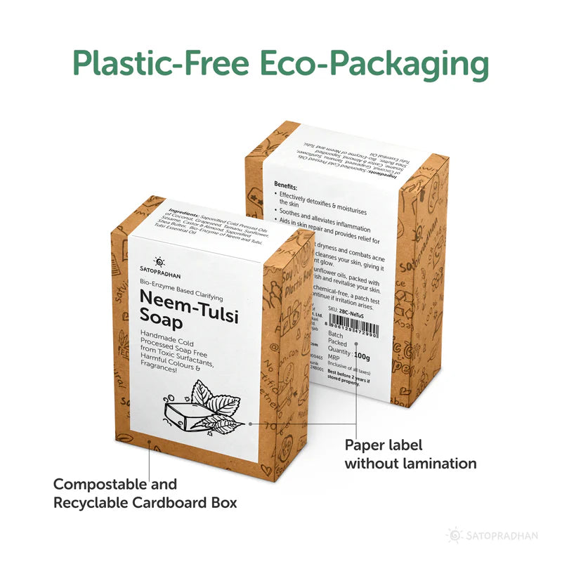 Satopradhan Clarifying Neem-Tulsi Soap - Cleansing & detoxifying organic pure bathing soap ideal for promoting clear, acne-free skin and fading dark spots.