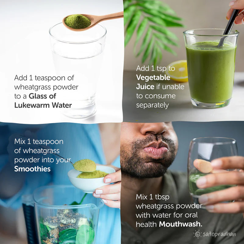 - Prepare Wheatgrass juice by adding 1 teaspoon of wheatgrass powder to 1 glass of lukewarm water and consuming it on an empty or nearly empty stomach.