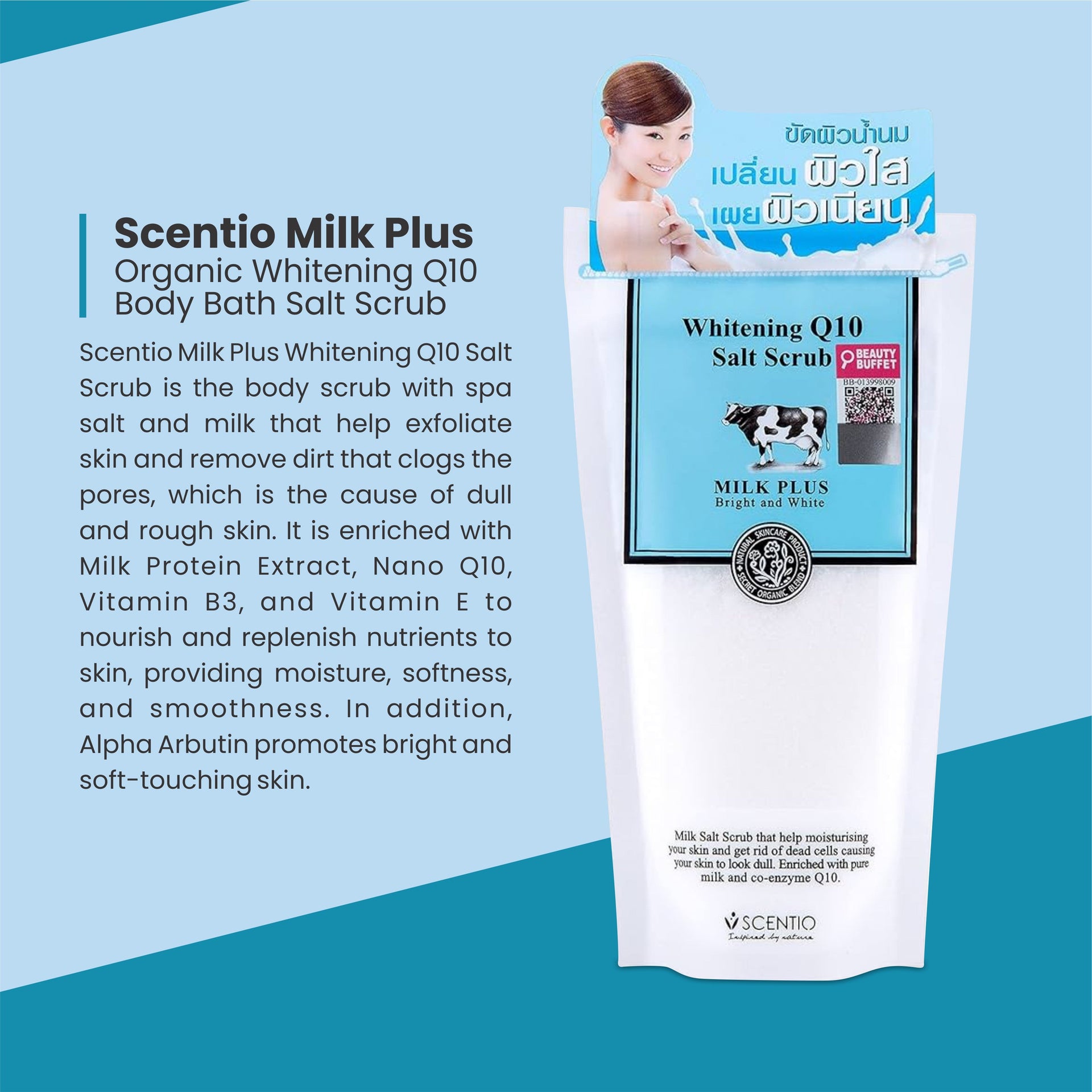 Are you searching for a luxurious body scrub that can transform dull, tired skin into soft, radiant perfection? Look no further than Scentio Milk Plus Organic Whitening Q10 Body Bath Salt Scrub. Crafted in Thailand, this premium body scrub combines the power of organic ingredients with advanced skin-nourishing technology to provide gentle yet effective exfoliation.