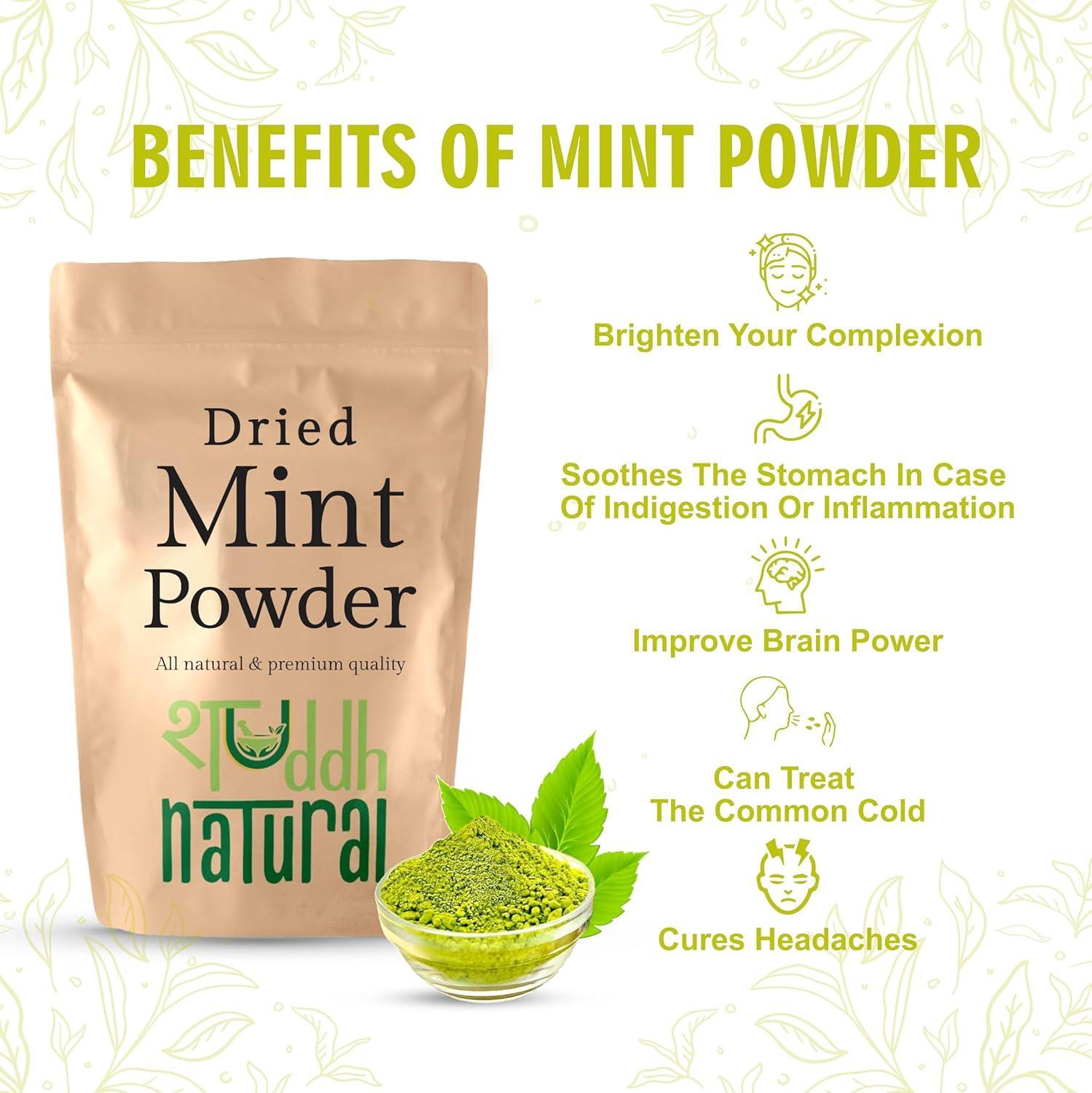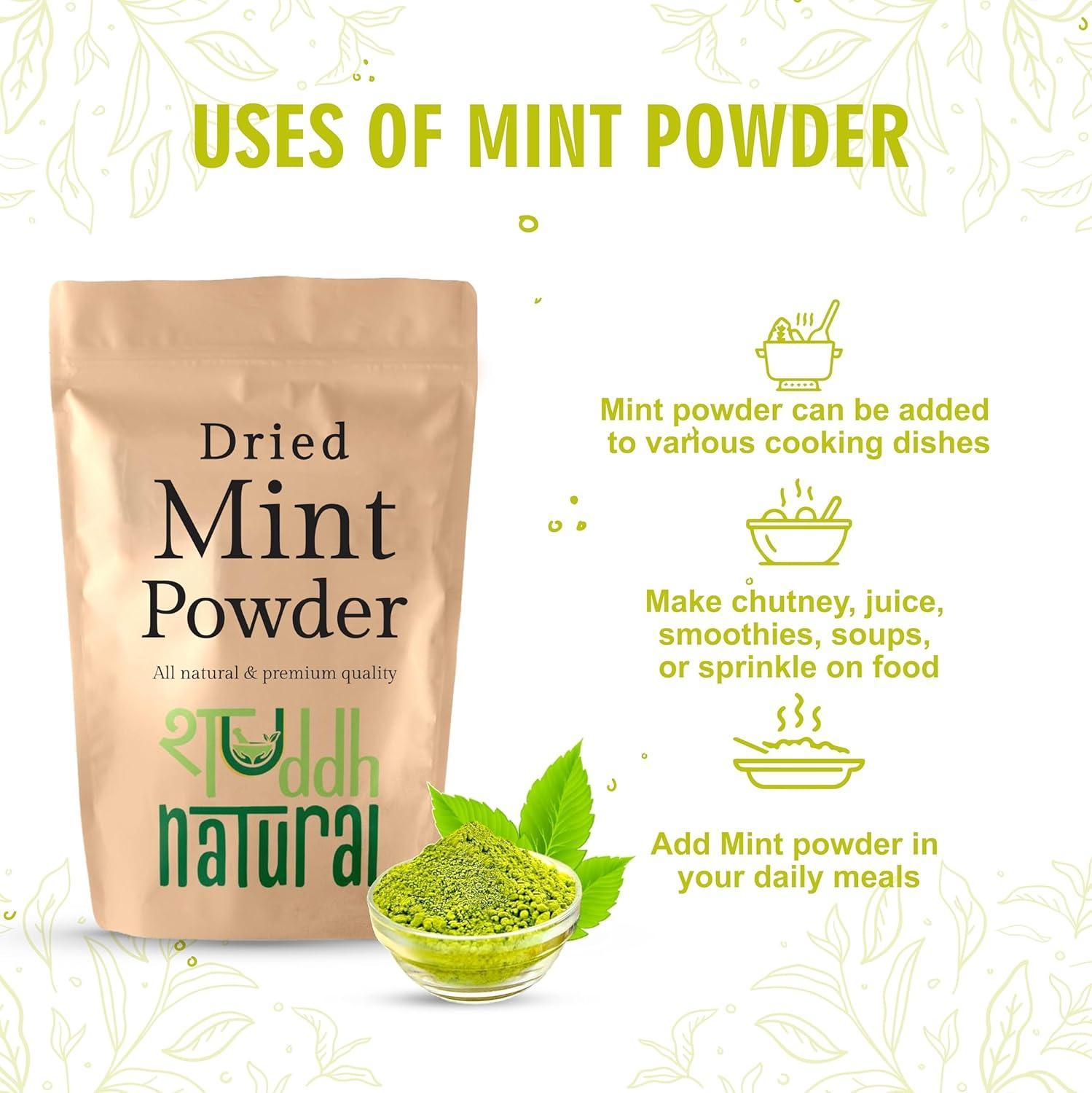 Shuddh Natural Mint powder - an essential ingredient for both culinary creations and skincare routines. From DIY beverages to teas, juices, and various dishes, our mint powder offers a refreshing addition to your everyday life.