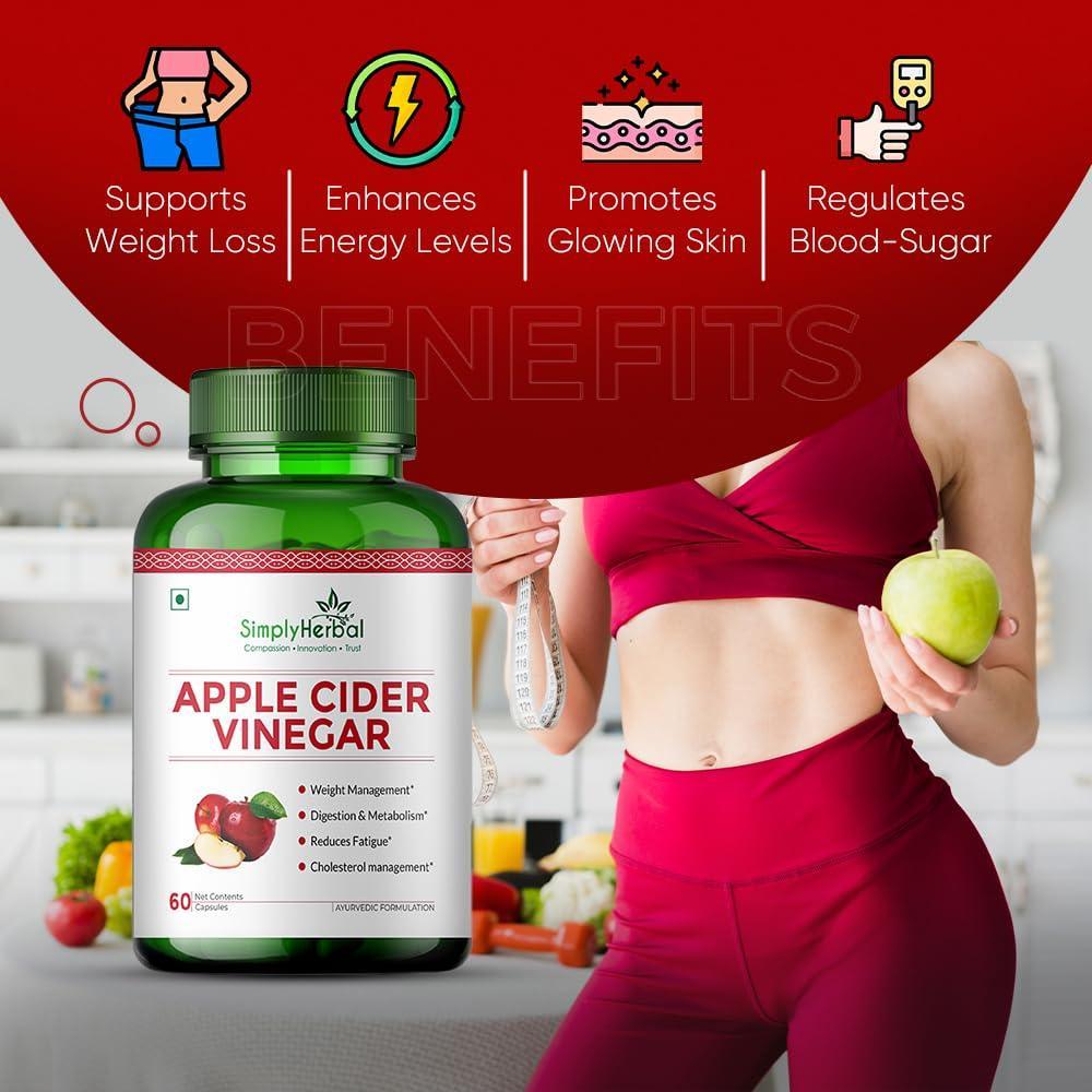 Simply Herbal Apple Cider Vinegar Capsule promotes calcium absorption from food and aids in the maintenance of joint health. It also aids in appetite regulation and weight management. It is also beneficial for controlling blood sugar.Key Ingredients: