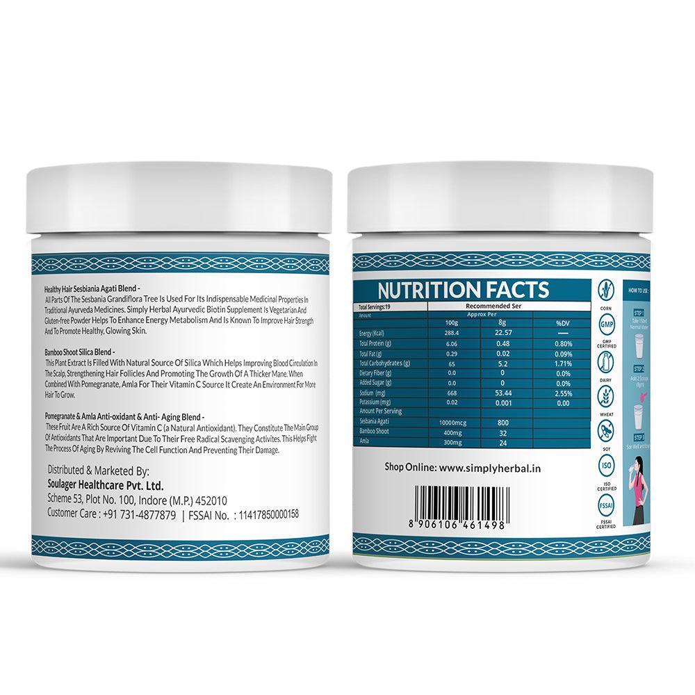 Simply Herbal Plant Based Biotin is needed for the metabolism of carbohydrates, proteins, and fats to support optimal energy levels. It is also vital for the synthesis of amino acids, which are the building blocks of keratin. Keratin makes up the hair, skin, and nails. Biotin can help improve the body’s keratin infrastructure and strengthen the hair and nails. It may alleviate dry skin, increase hydration, and maintain healthy skin.