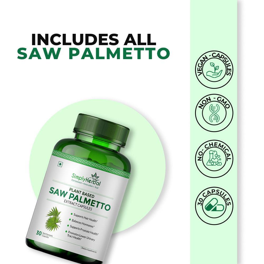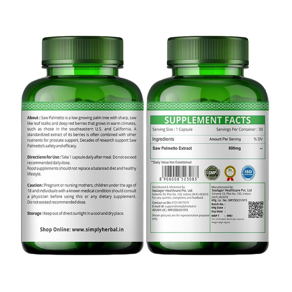- Simply Herbal Organic Saw Palmetto Extract Supplement Capsules - 800 MG for hair growth - 30 Capsules