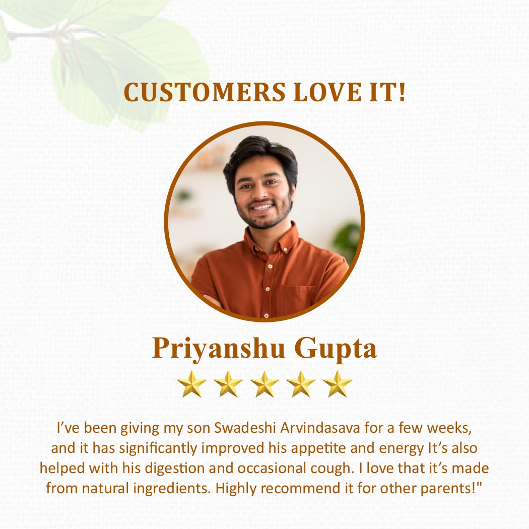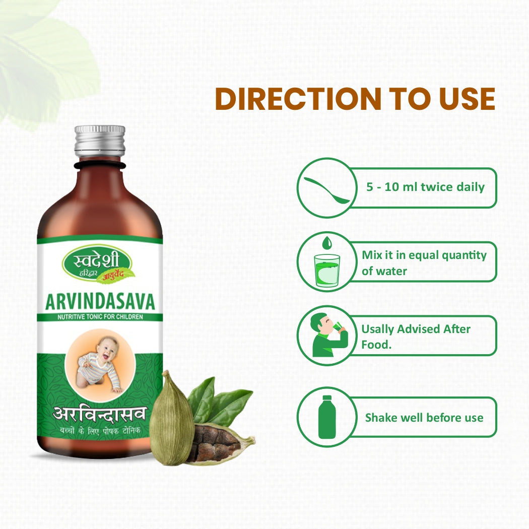 Swadeshi Arvindasava is not just a digestive tonic; it's a comprehensive health solution that nurtures your child's physical and mental well-being. Backed by traditional Ayurvedic wisdom, this syrup offers a safe and effective way to support your child's health during their crucial growth years.