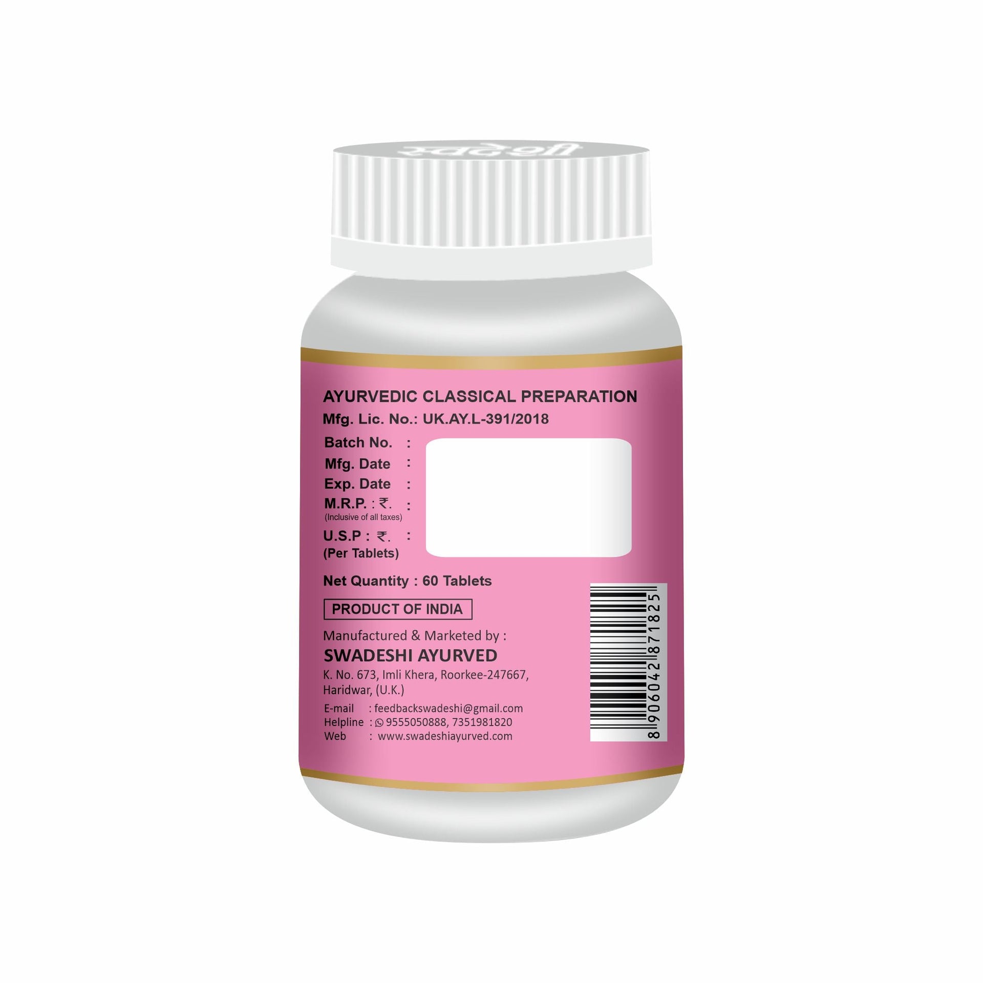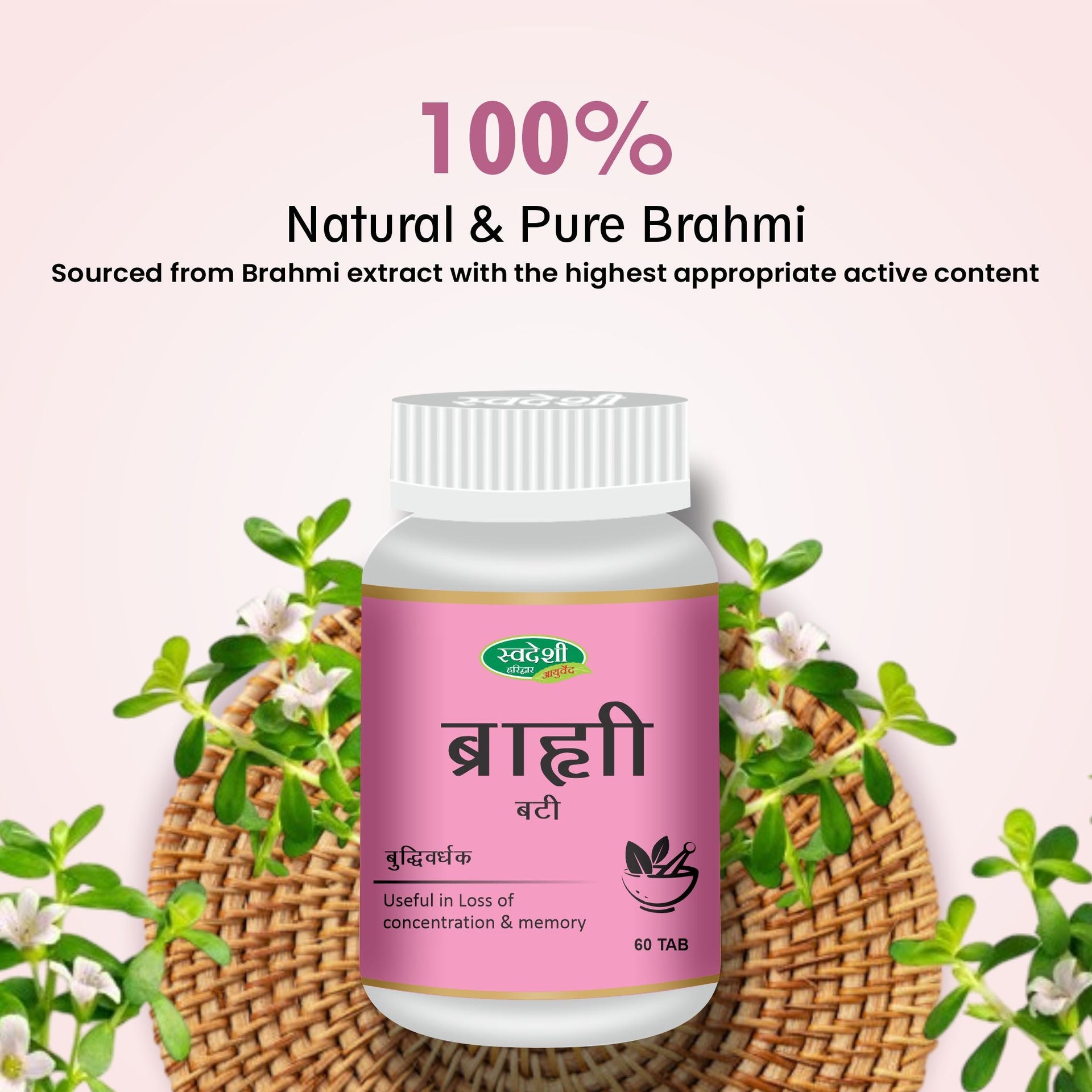Swadeshi Brahmi Vati contains brahmi, shankhpushpi which are often regarded as a brain booster. It helps in improving memory retention. It is useful in the treatment of arthritis and strengthening the immune system.