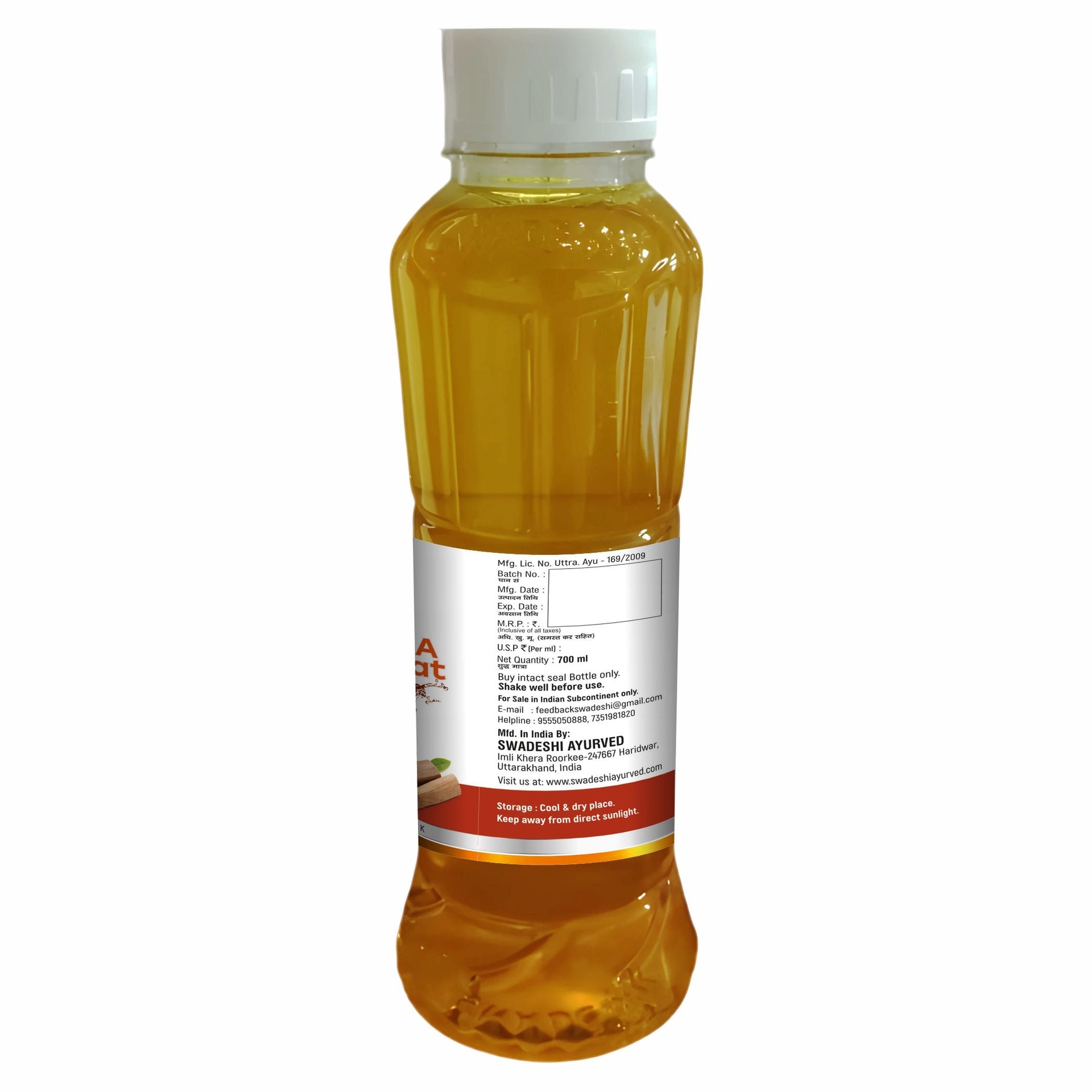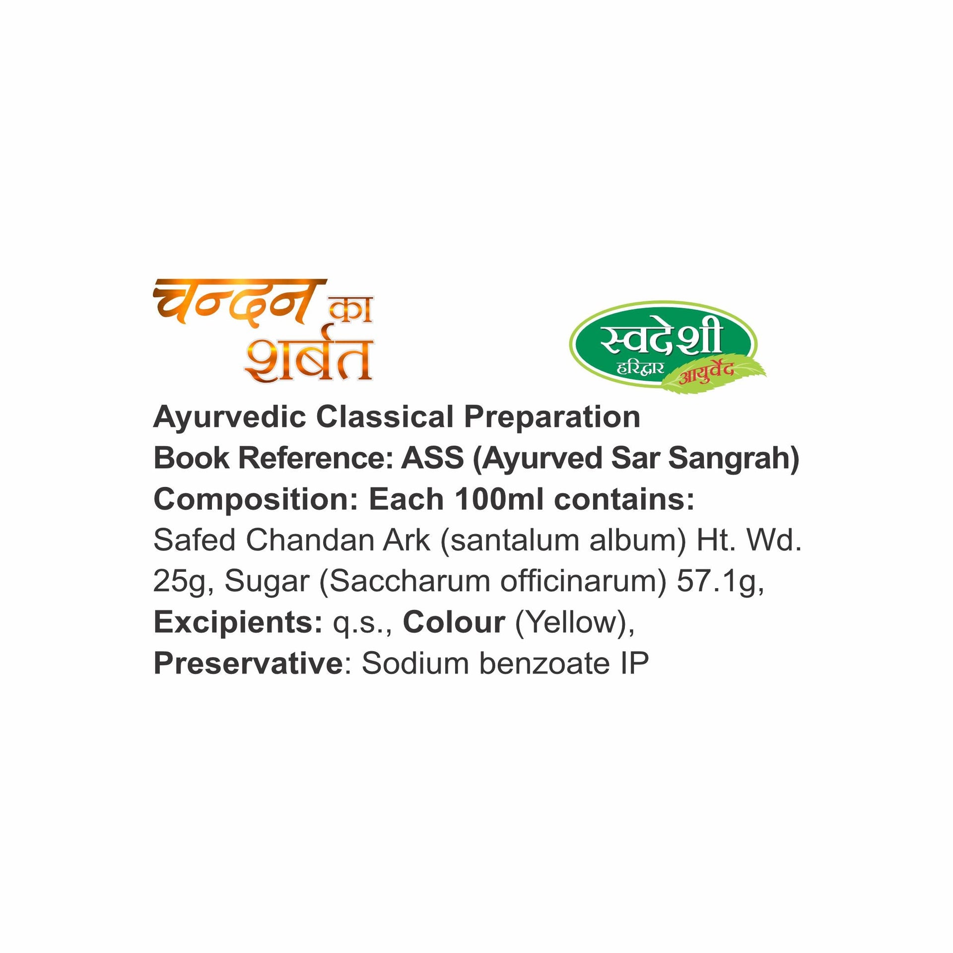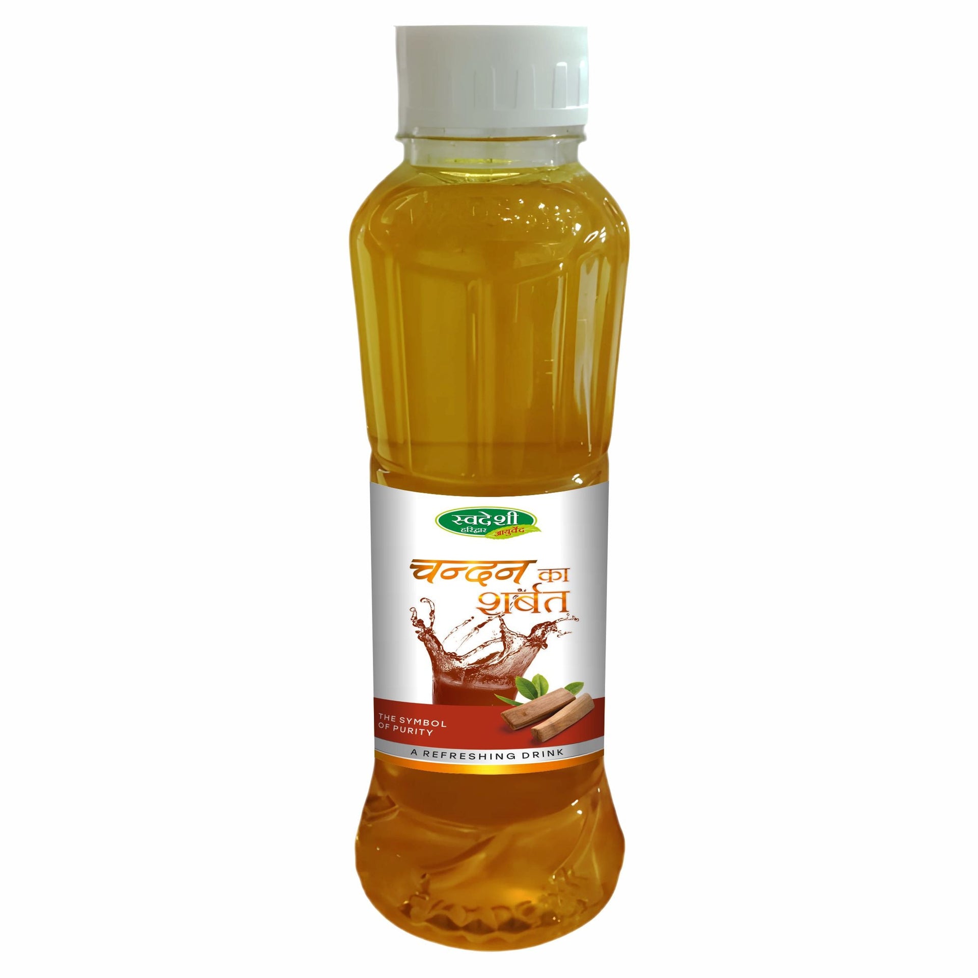 Swadeshi Chandan Sharbat is an Ayurvedic syrup that contains Chandan as one of its main ingredients. Chandan is widely used in Ayurveda because of its cooling property and helps with pitta-dominant diseases. It strengthens urinary organs and removes toxins from the kidney through urine. It reduces heat inside the body and gives a cooling effect to the body.