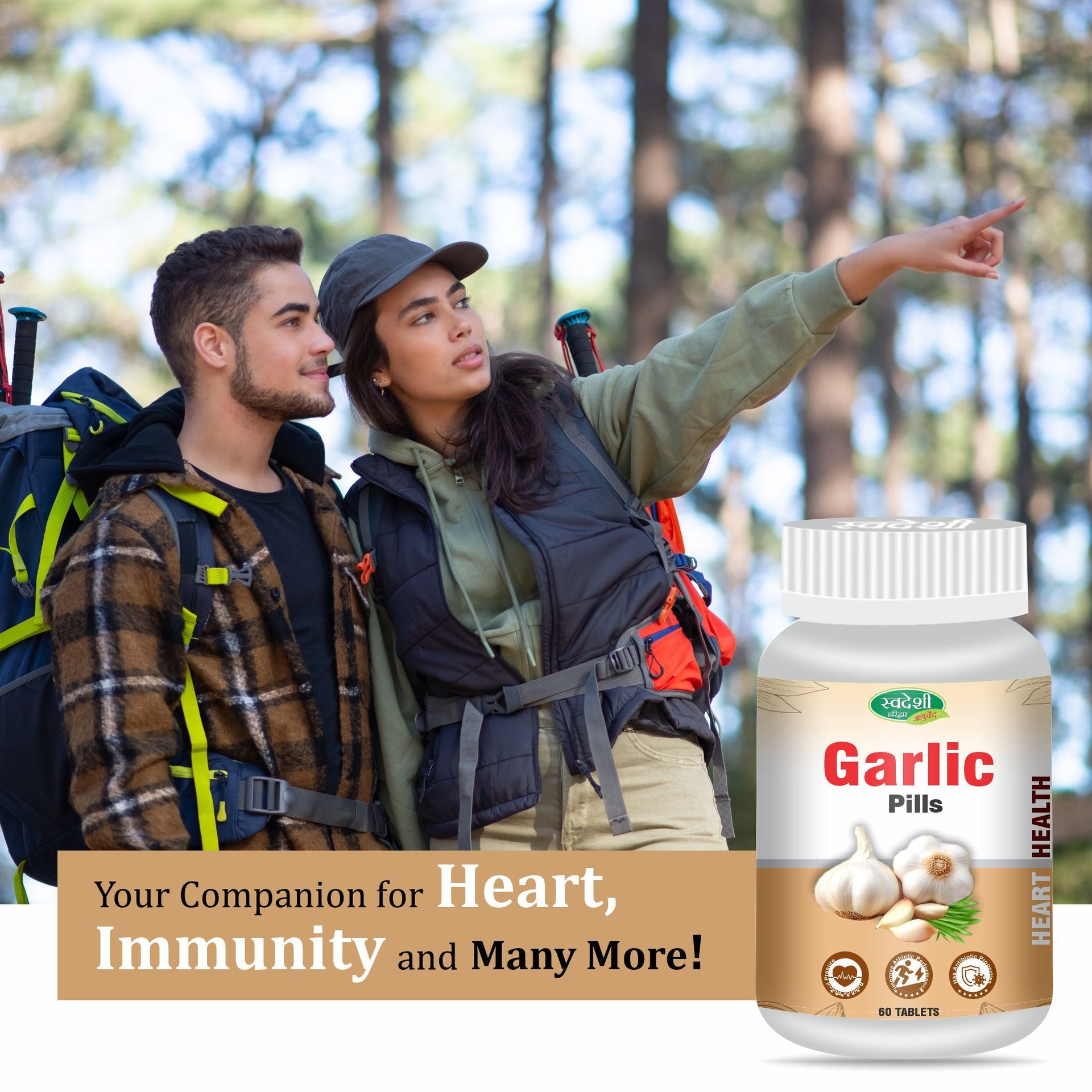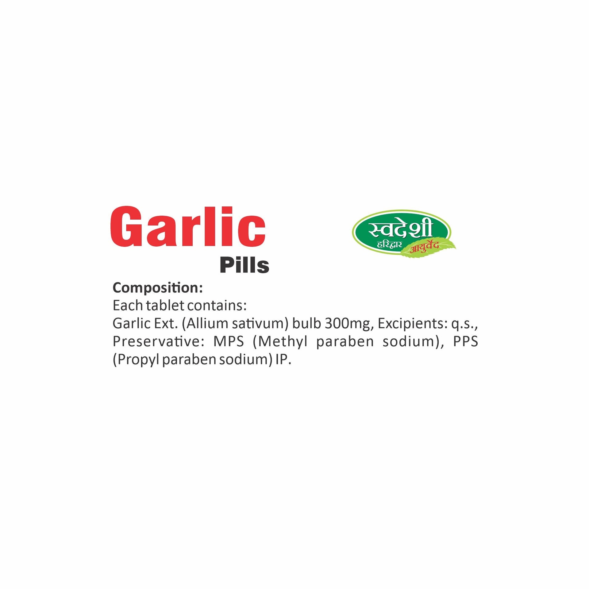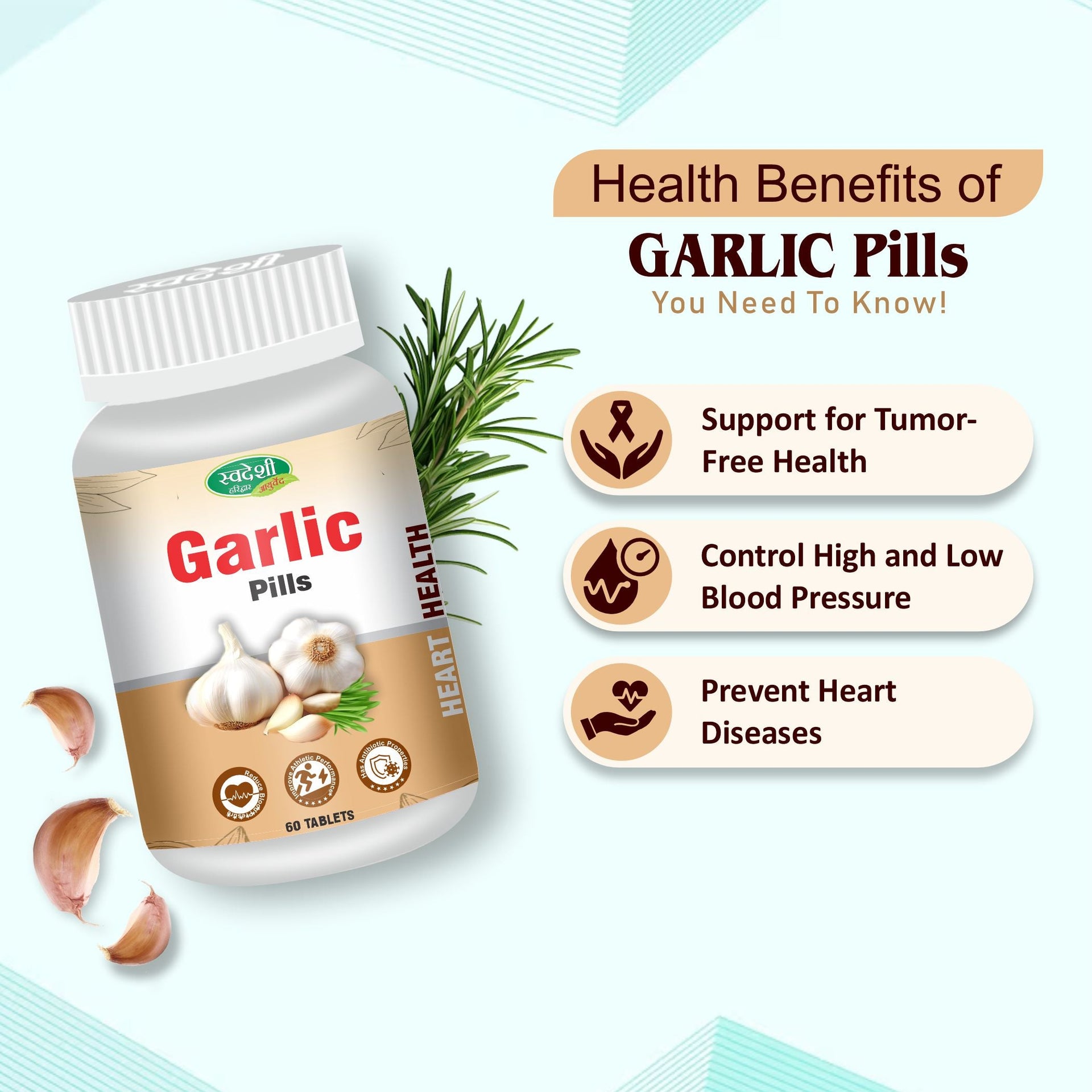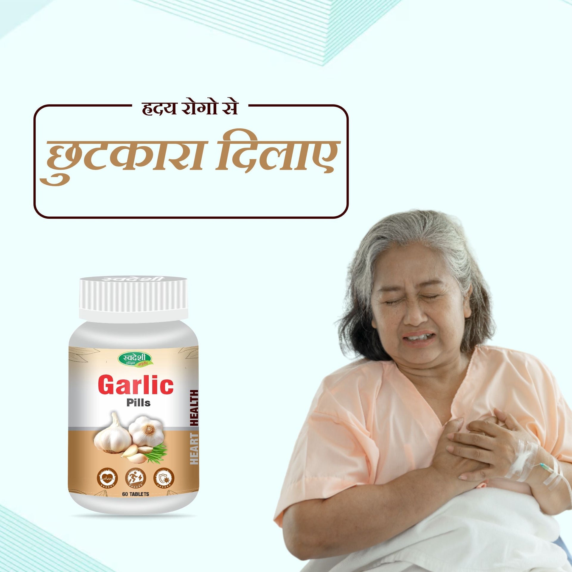 Swadeshi Garlic pills are a great dietary supplement meant to enhance the body's overall health. Allicin is the primary element of Garlic and it helps in improving blood lipid levels. Garlic has been used since ancient times as a supplement to improve heart health and has multiple health benefits.