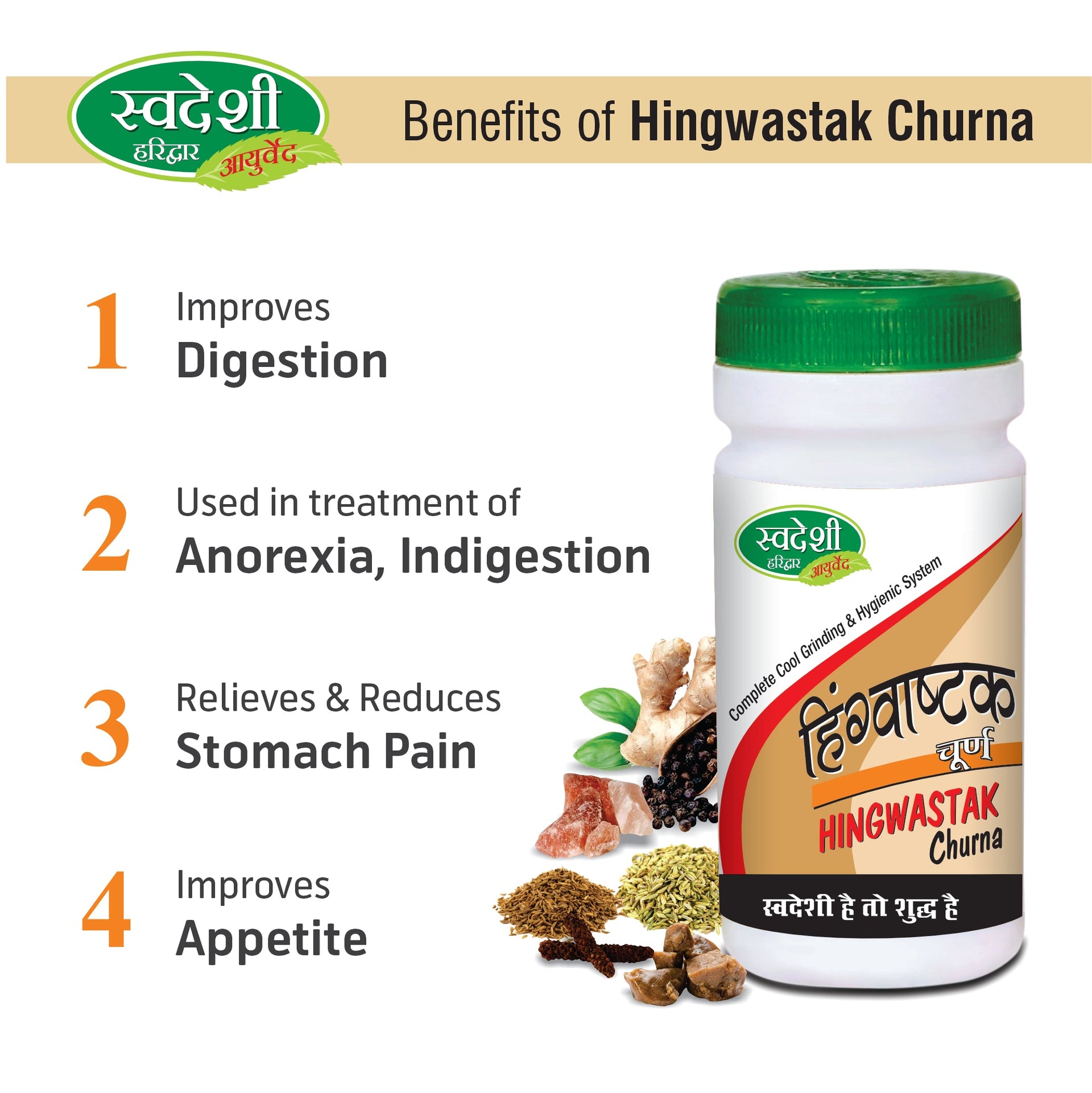 - Swadeshi Hingwashtak Churna is useful in the treatment of abdominal disorders