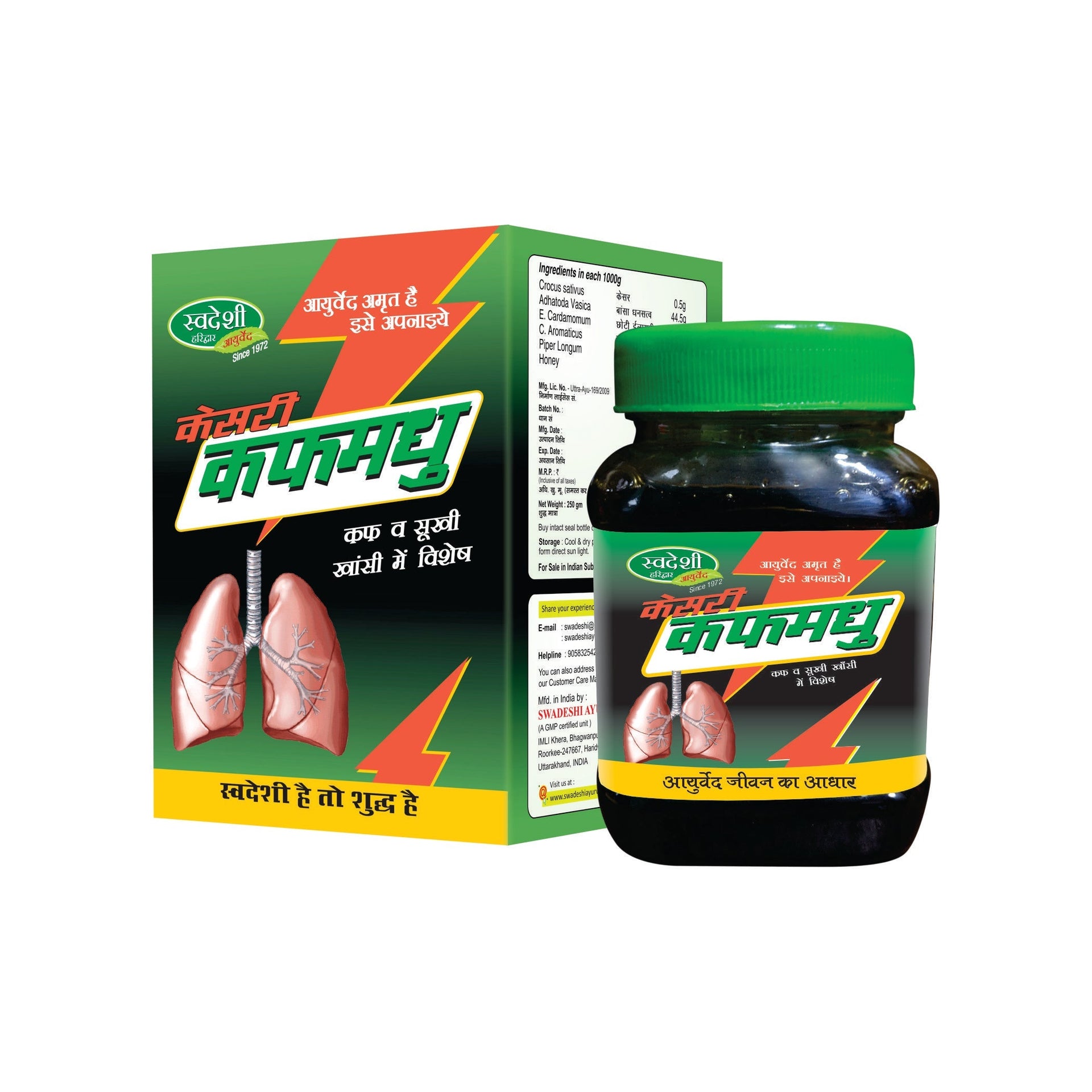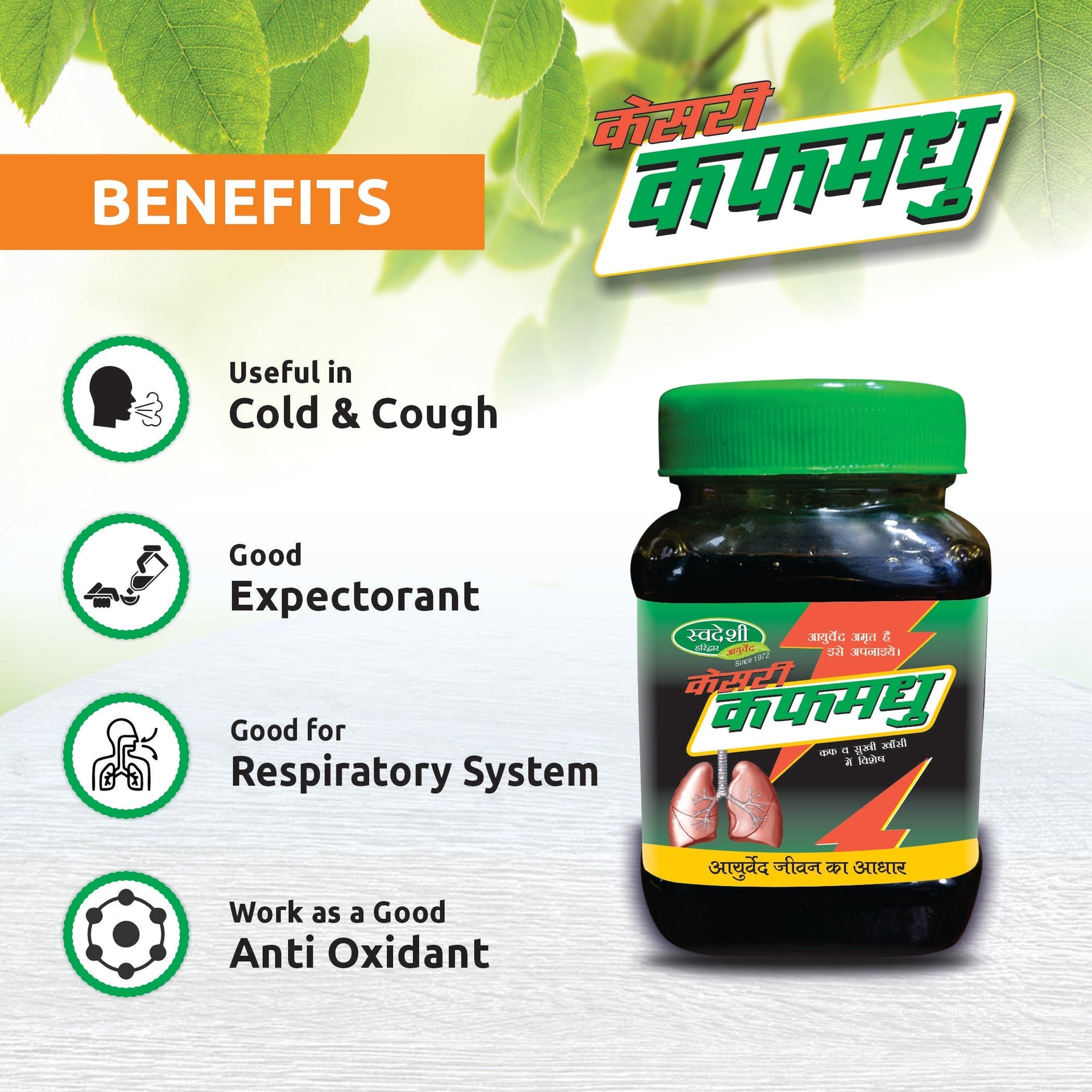 Swadeshi Kaseri Kauffmadhu is useful for the treatment of respiratory ailments like dry cough, asthma and general cold. It is a good expectorant.