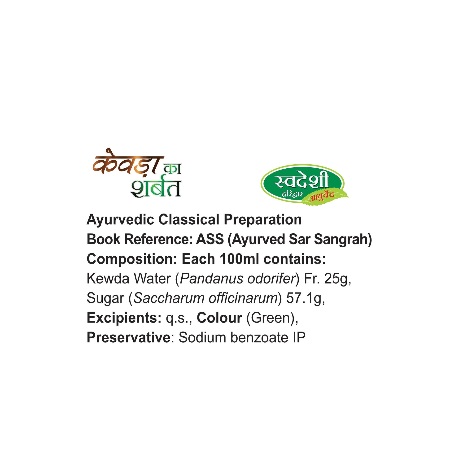 Why Choose Swadeshi Kewda Sharbat? Swadeshi Kewda Sharbat is a premium herbal formulation designed to offer a natural cooling effect and multiple health benefits. Whether consumed as a refreshing drink or used for its therapeutic properties, this sharbat is a must-have for maintaining skin health and overall relaxation.