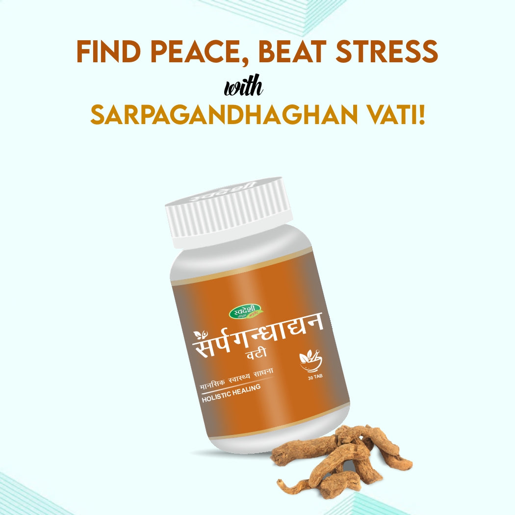 Swadeshi Sarpagandha Vati is an Ayurvedic Tablet. It contains Sarpagandha as a key ingredient. A remedy for hypertensive patients. Sarpagandha Ghan Vati improves symptoms of hypertension, insomnia (sleeplessness), anxiety, irritability, constipation, fever, and manias. This medication is also useful in conditions like sexual aggression and vertigo. In Ayurveda, Sarpagandha is used for the treatment of high blood pressure, insomnia, asthma, acute stomachache, and painful delivery and for mental illness such as neuropsychiatric disorders, psychosis, and schizophrenia.