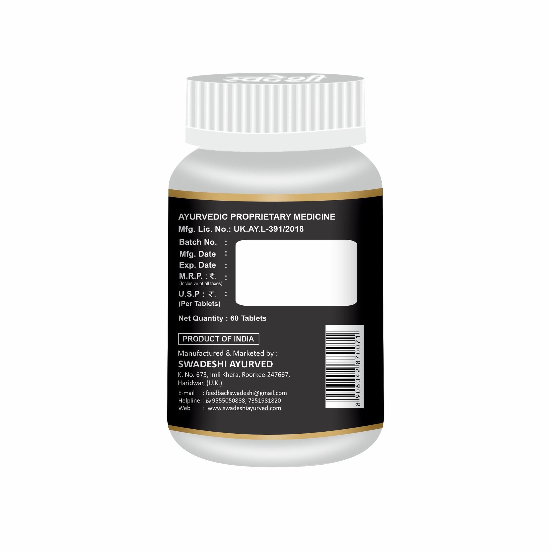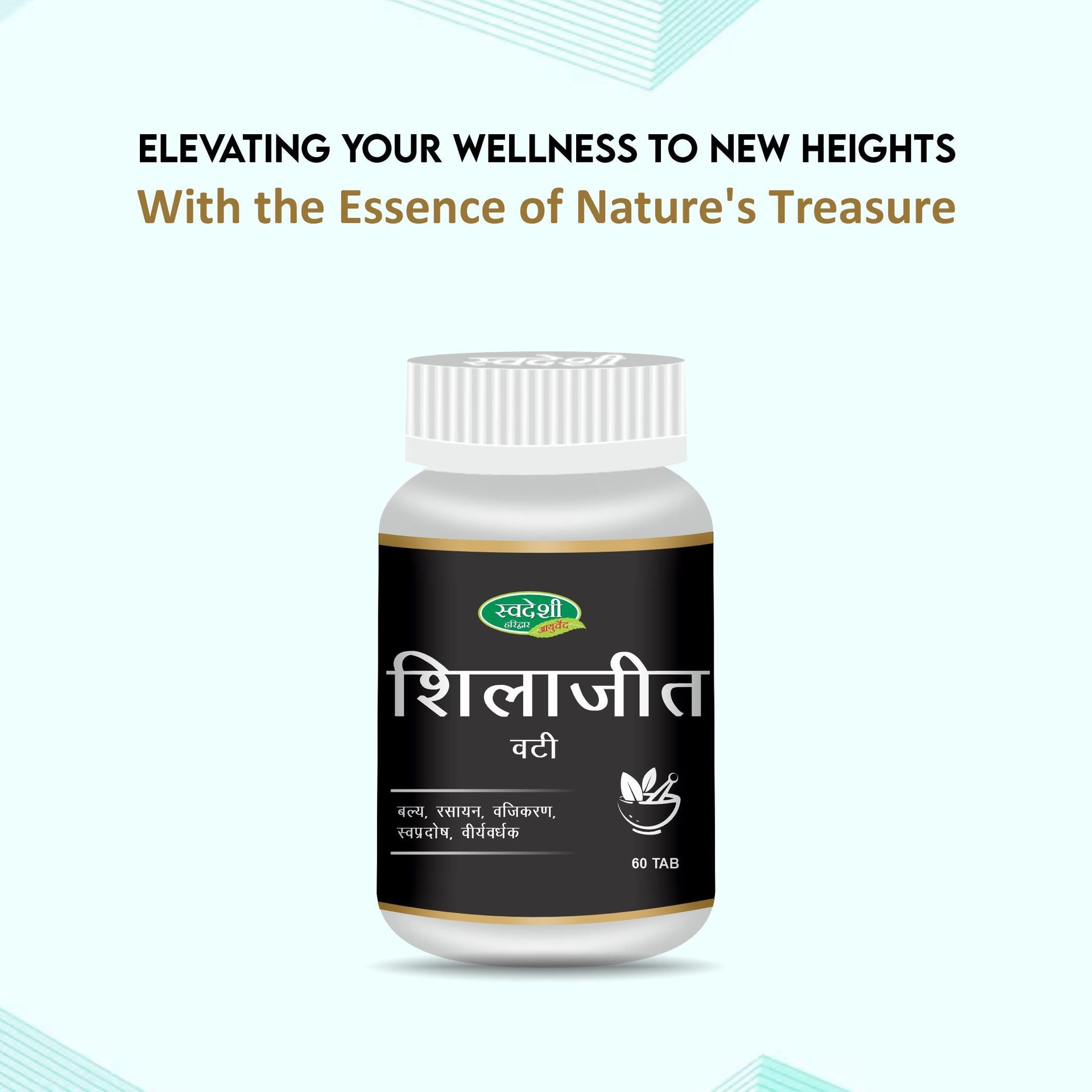 Swadeshi Shilajeet Vati is an Ayurvedic herbal supplement prepared with Shilajeet and other natural ingredients. It is designed to support daily vitality, balance, and overall wellness as part of a healthy lifestyle.
