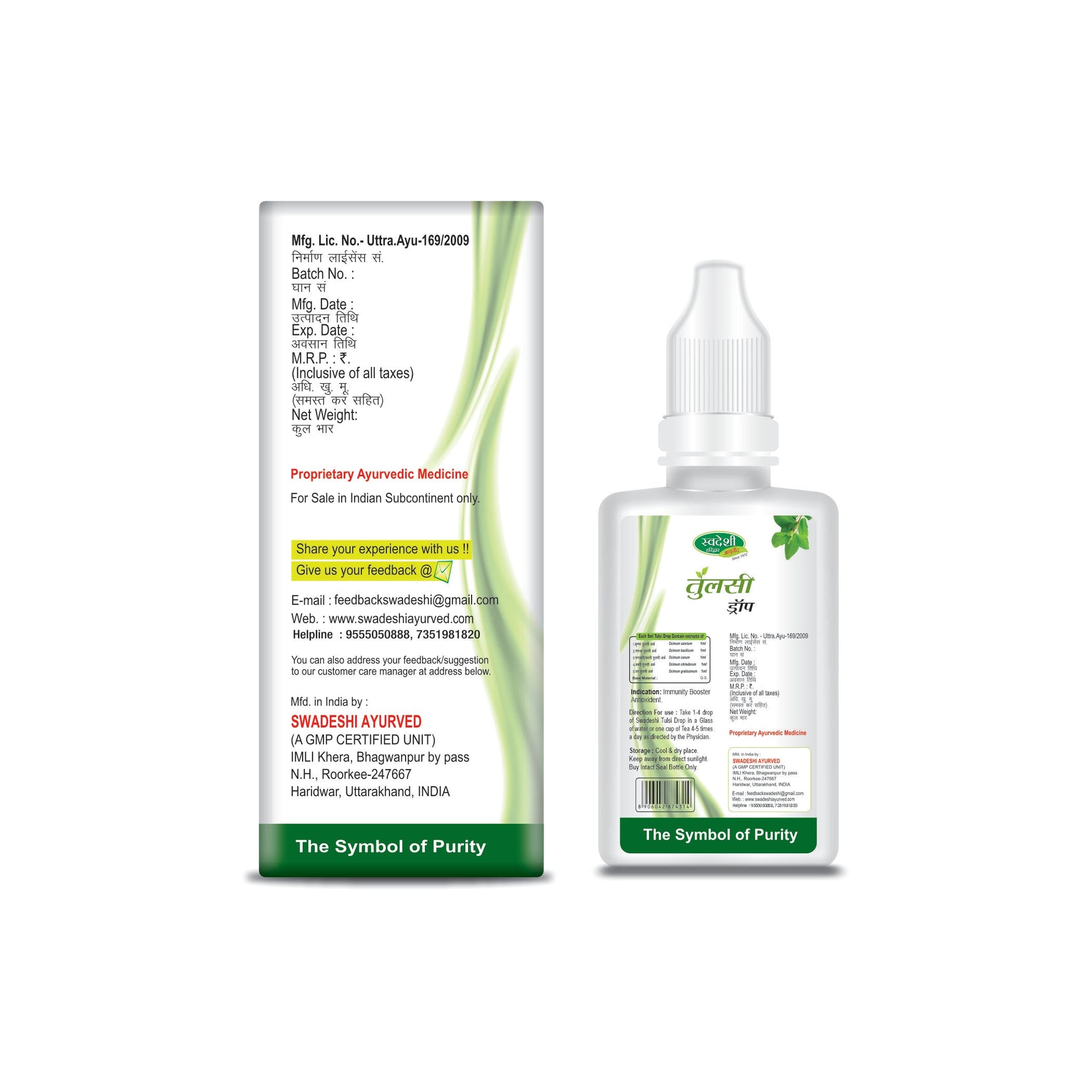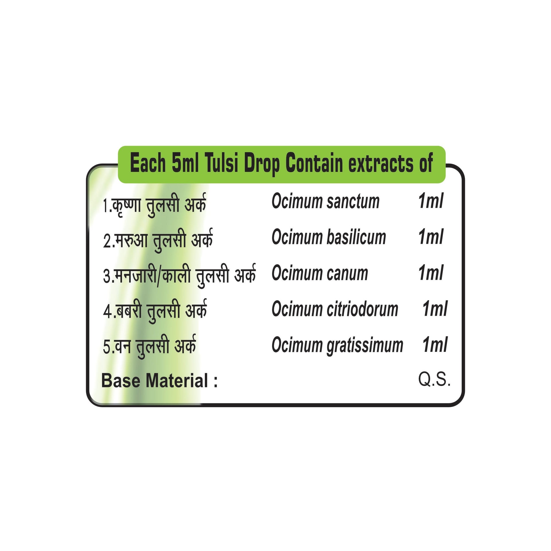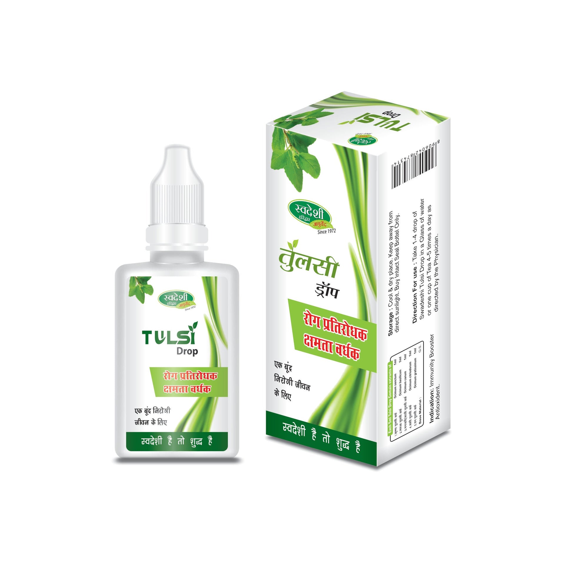 - Tulsi Drops improves the body’s overall defence mechanism and helps to mobilize mucus in bronchitis and asthma