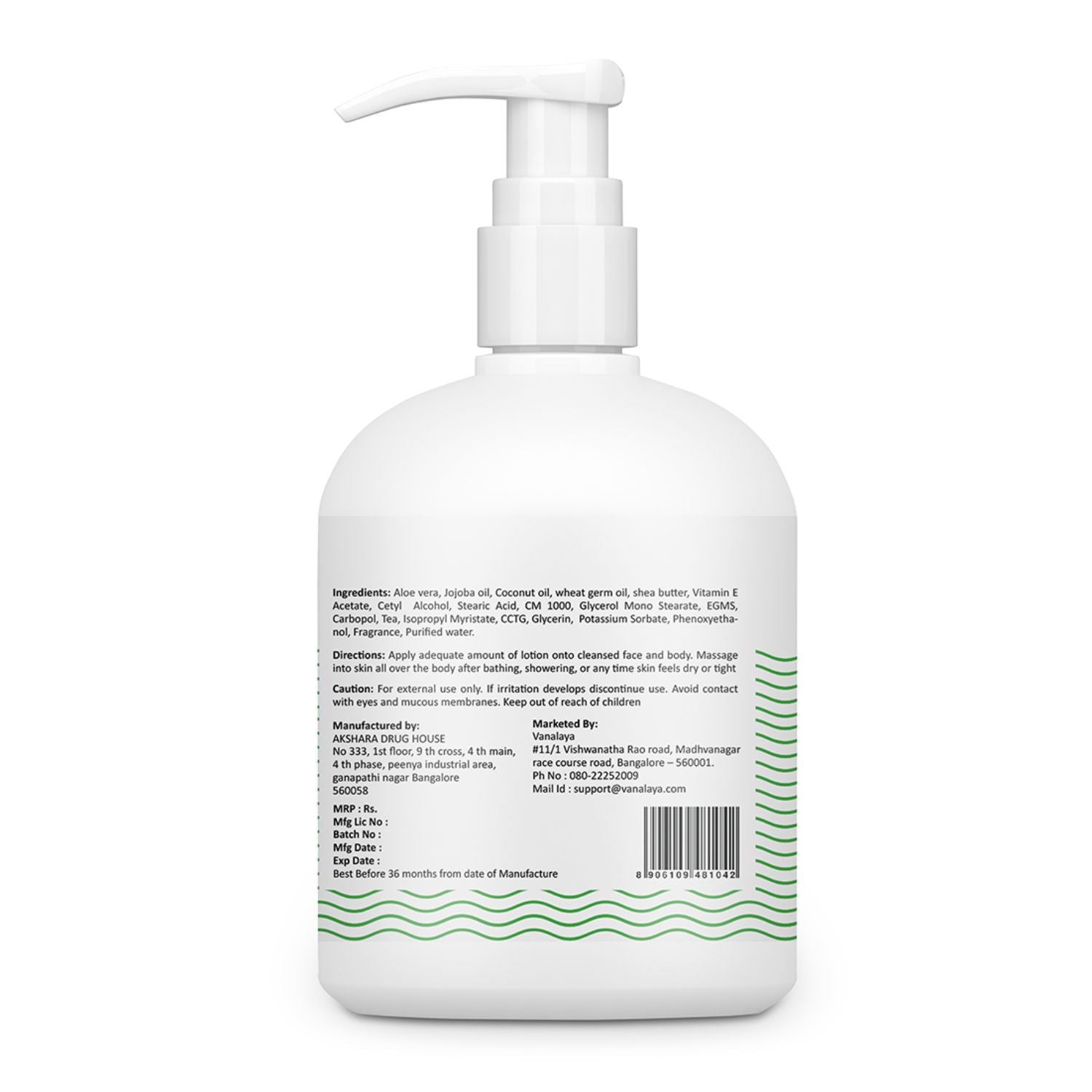 Vanalaya Aloe Vera body lotion with coconut oil and Almond Oil nourishes, softens, and restores the whole body, leaving you silky smooth and soft all day long. This naturally scented body lotion is free from nasty ingredients often found in other high end skin products; Aloe Vera Lotion helps the hydrating needs of normal skin. It produced a gel, rich in vitamins and minerals, known for its highly hydrating properties. Shea Butter is rich in essential nutrients known to build skin lipids to replenish and soften extra-dry skin. Our specially formulated lotion is rich yet non-sticky, absorbs quickly into the skin, and is smooth, gentle, and effective on even the most sensitive skin. Vanalaya Alovera Moisturizing lotion has a unique, lightweight formula that provides 24-hour hydration and helps restore the protective skin barrier. We use the highest grade medical Aloe and combine it with essential vitamins, minerals and nutrients that your skin needs. We use organic and natural active botanicals, pure plant oils, vitamins and minerals that are safe and gentle and clinically proven to nourish and revitalize skin leaving it looking younger and feeling healthier. Our products help rejuvenate your skin at a cellular level to repair wrinkles, reduce inflammation, and heal damage caused by age and the environment. They hydrate the skin and leave a protective barrier to keep moisture in and free radicals and pollutants out. Our 100% vegetarian formula is hypo-allergenic and does not contain any parabens, phthalates or synthetic fragrances. It is also not tested on animals