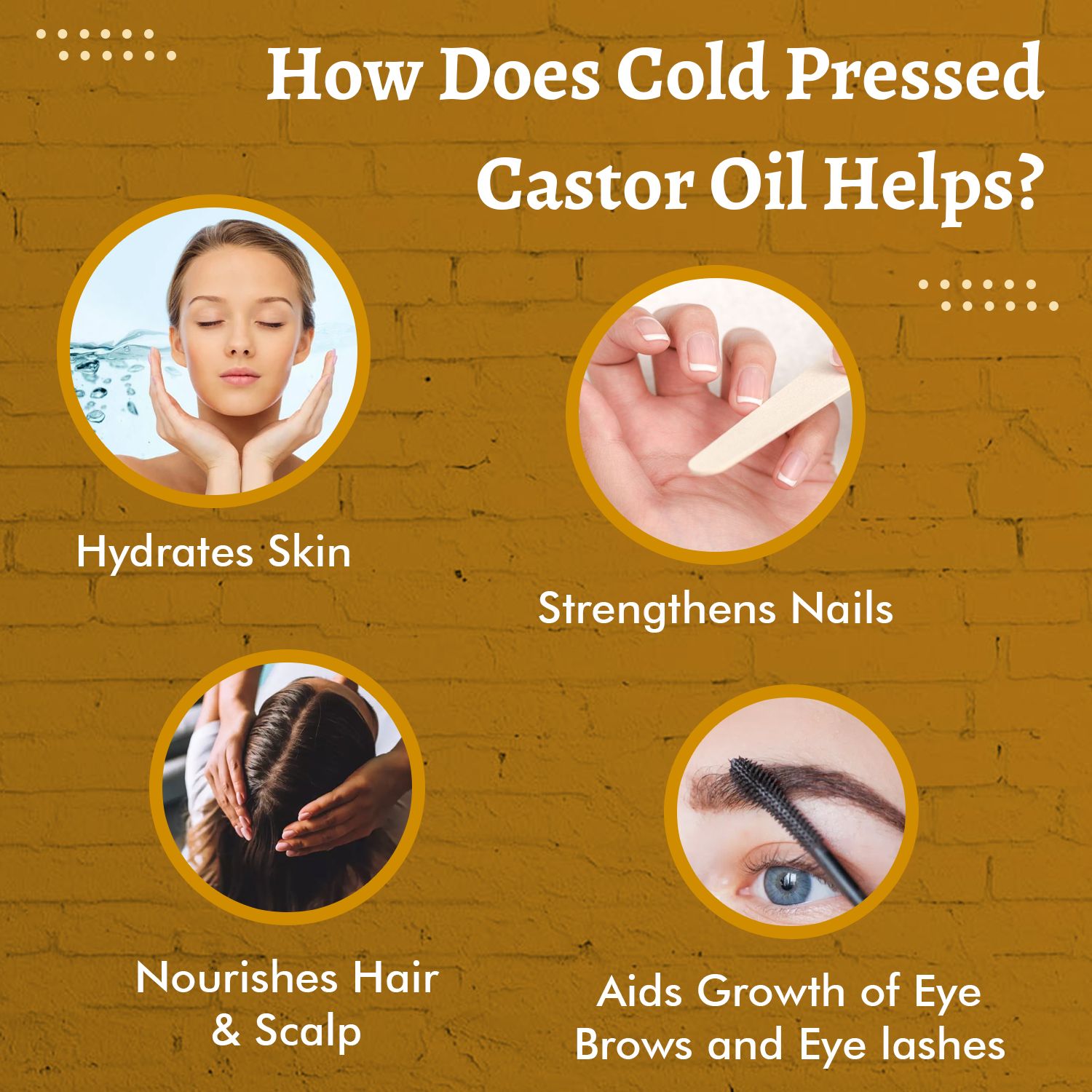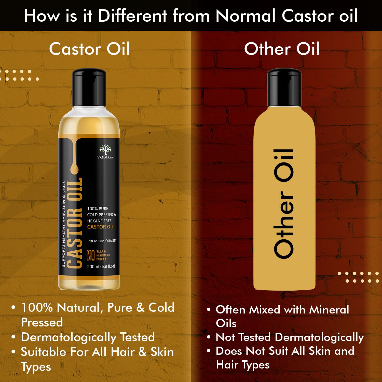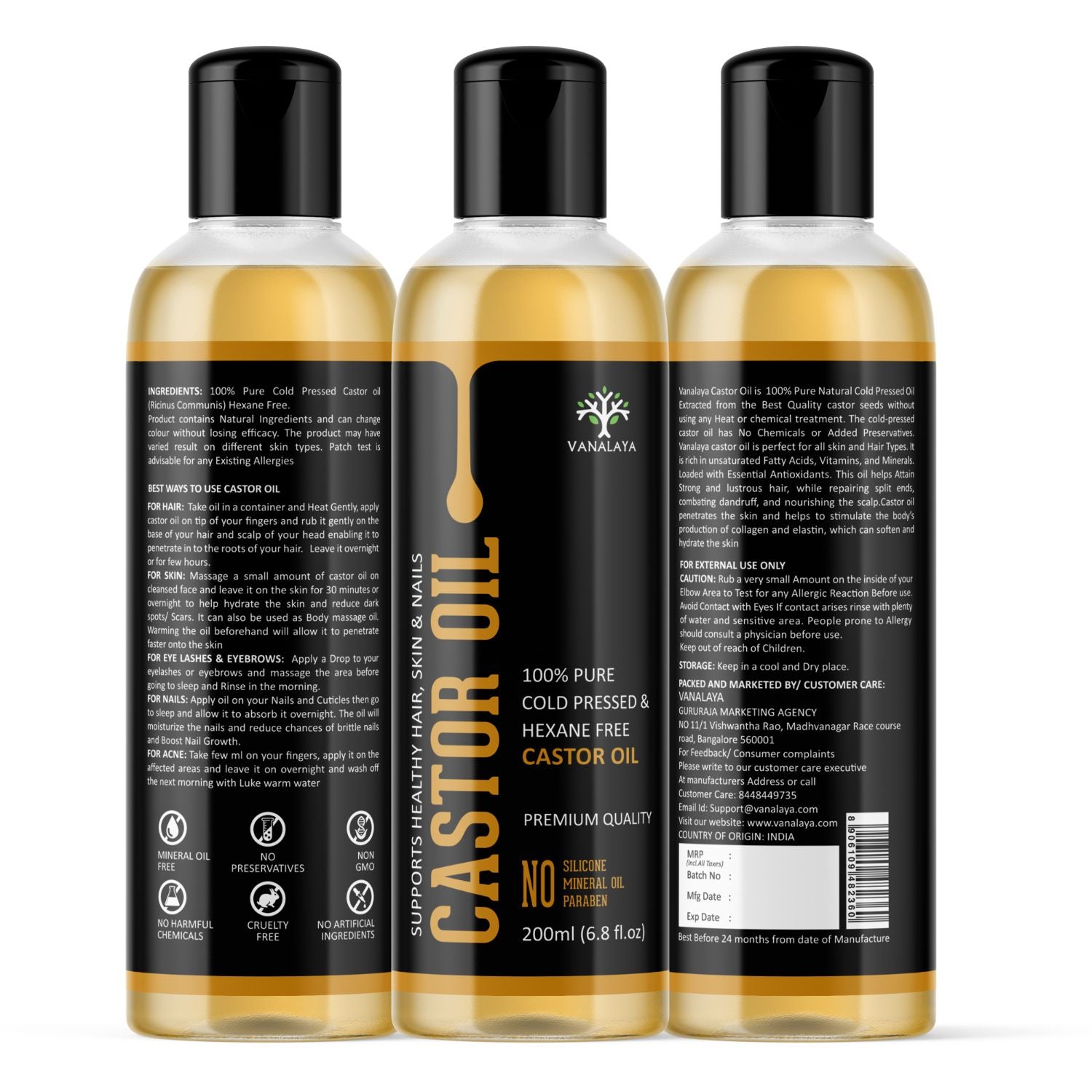 Vanalaya Castor Oil is organically grown and cold pressed with no added preservatives. Because it’s 100% pure, it easily absorbs into your lashes and brows to boost hair growth. Castor Oil helps grow longer and thicker hair in a quick, natural way, while also diminishing hair loss. It is also a natural hair treatment pack for dry brittle hair, dry scalps, and dandruff. Besides hair growth, Castor Oil is also great to use as a natural moisturizer and for skin health. It helps retain moistures so your skin doesn't get dry during the day. Castor Oil also helps your nails grow longer and stronger. If you have dry cuticles, this oil will help your fingers moisturize, especially during the harsh winter season.