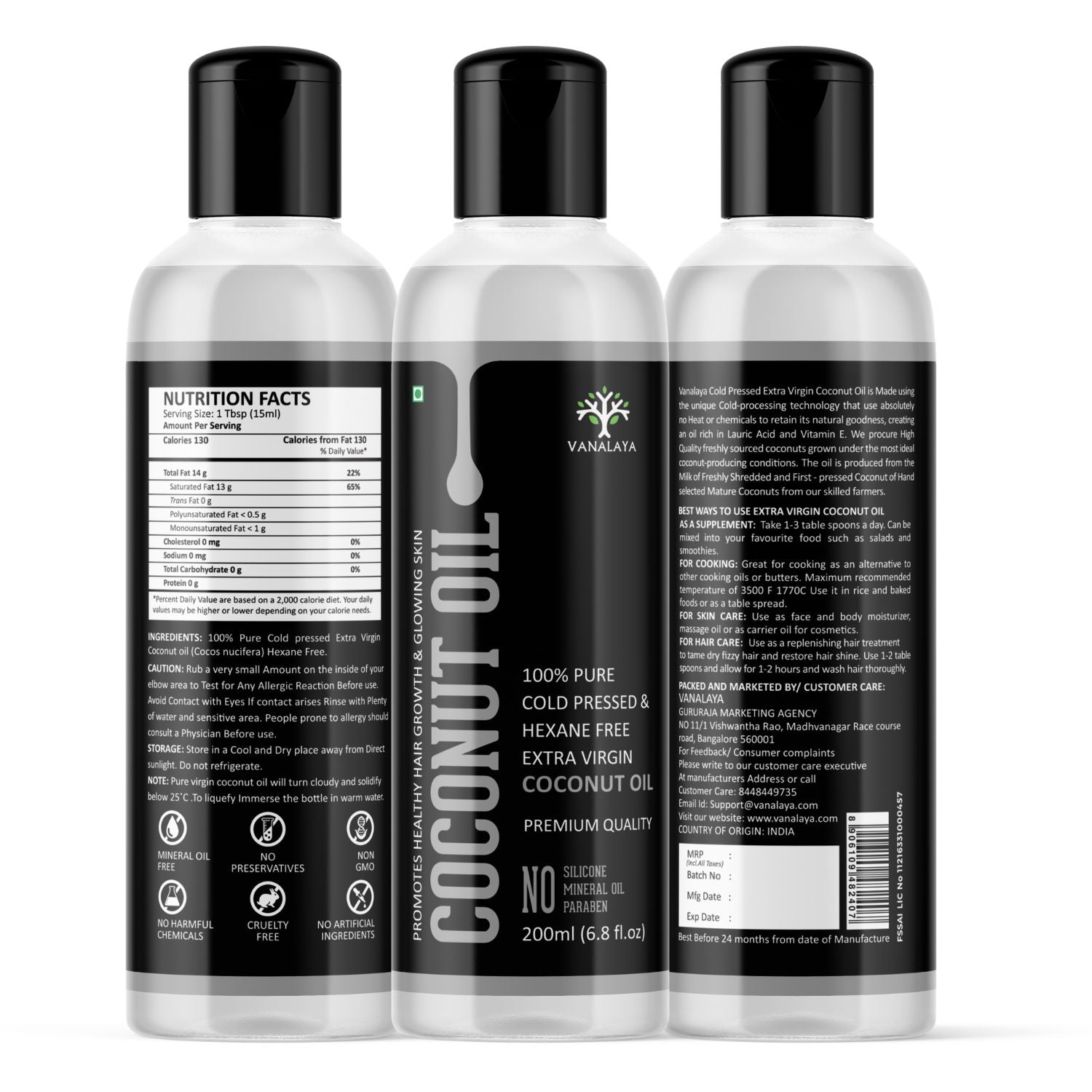 Vanalaya Cold Pressed Virgin Coconut oil is a superfood where fresh coconuts are cold-pressed right after harvesting. The fresh coconut inside each nut yields a pure, smooth oil that is never deodorized, bleached, or refined. With loads of vitamin E. This pure coconut oil is an excellent source of healthy fat burning medium chain fatty acids for weight loss. Apply our coconut oil to roots and ends of hair for a conditioning hair treatment. Use weekly for radiant looking hair. This coconut oil for hair & skin can be used for a deep conditioning hair treatment or natural skin moisturizer. Our Organic Coconut Oil is naturally rich in Medium Chain Triglycerides (MCTs) supplying natural energy to your body. Use it by the spoonful to add creamy richness to smoothies, salad dressings, or keto-friendly coffee.