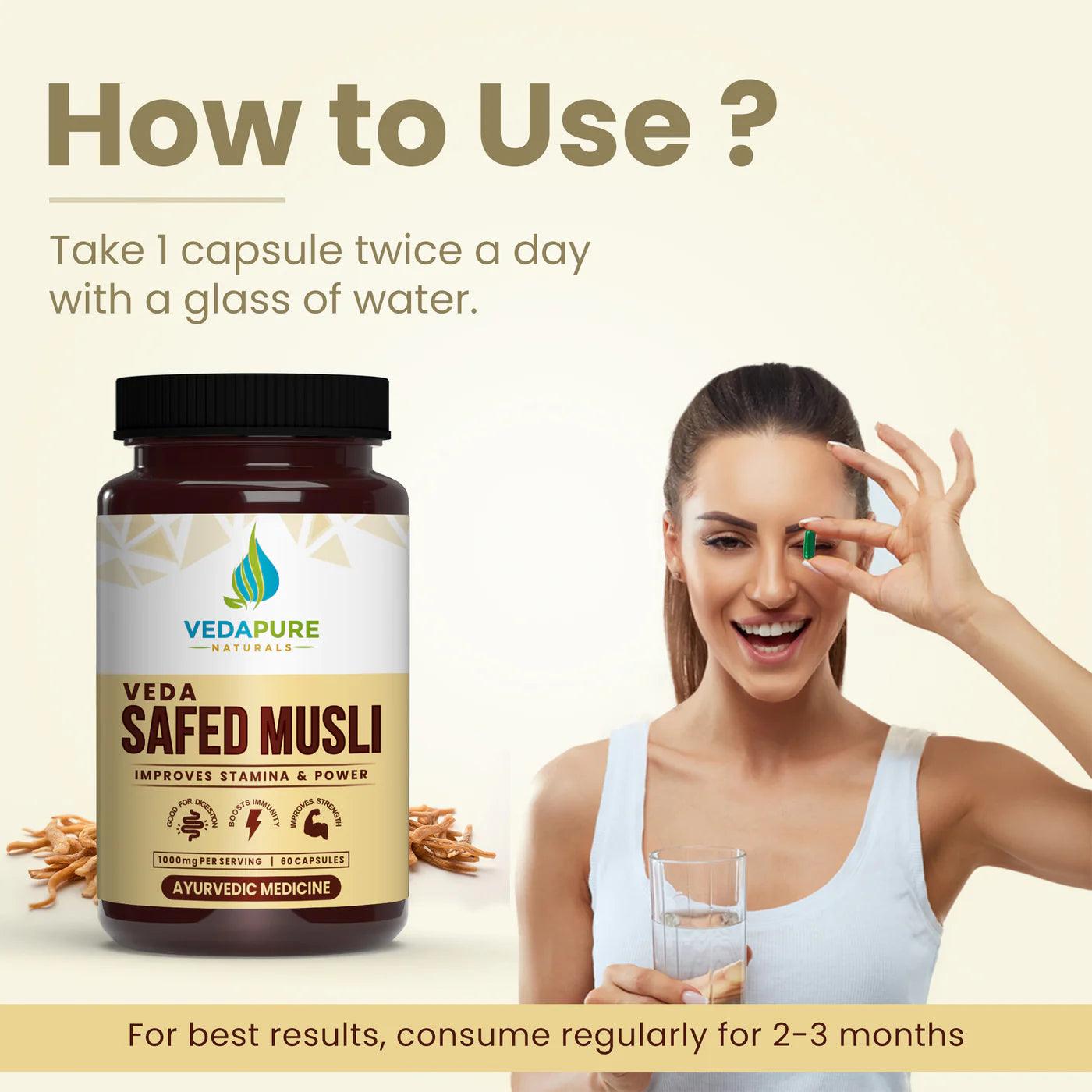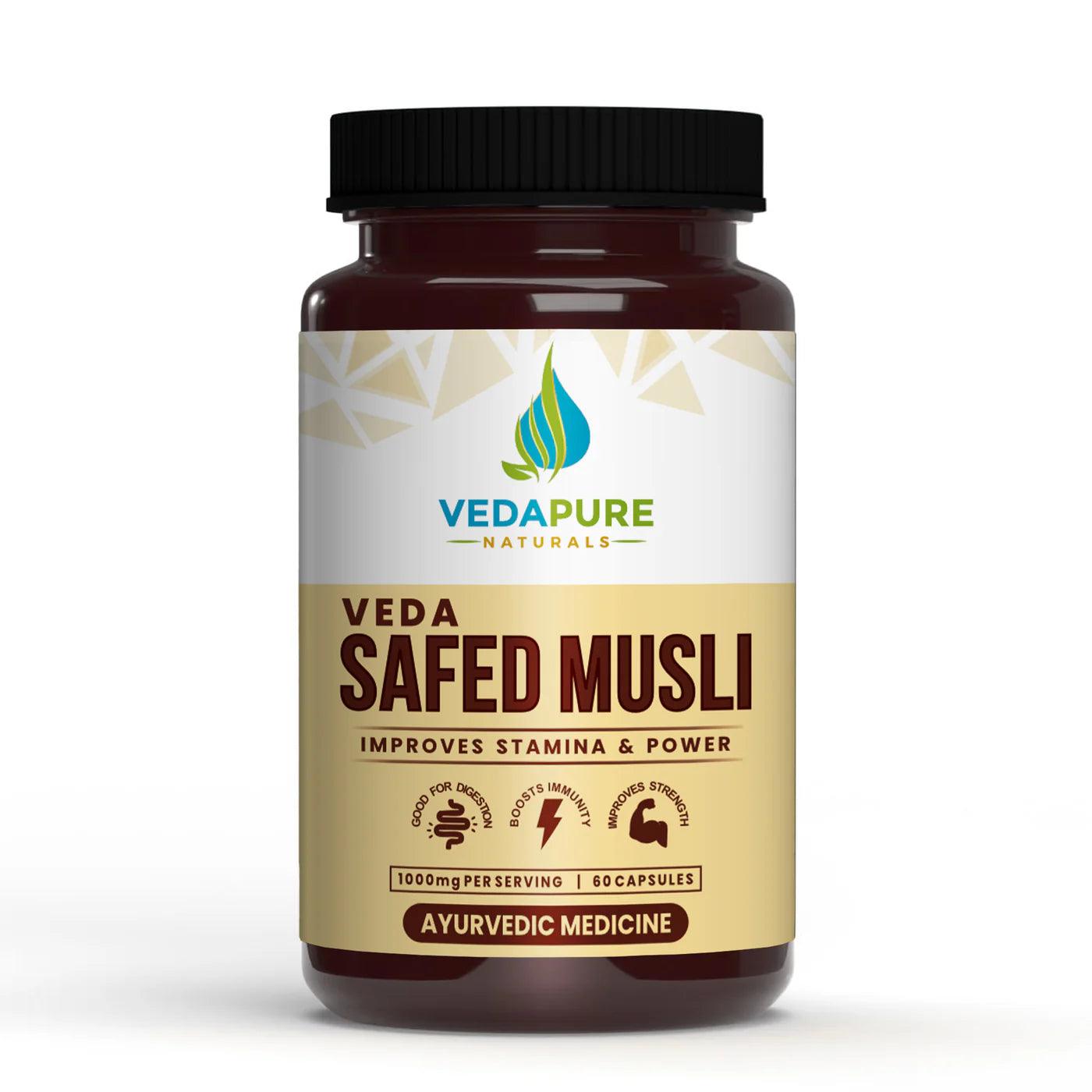 Vedapure Naturals Safed Musli Capsules Extract Power is a remarkable energy booster. This energy supplement rejuvenates the body and increases muscle mass. with the help of Safed Musli Powder, will help achieve a fitness level and a strong body. It will help to improve the strength of the body as well as nourish every tissue. Get on the Safed Musli Extract Powder and reflect on your attractive physique.