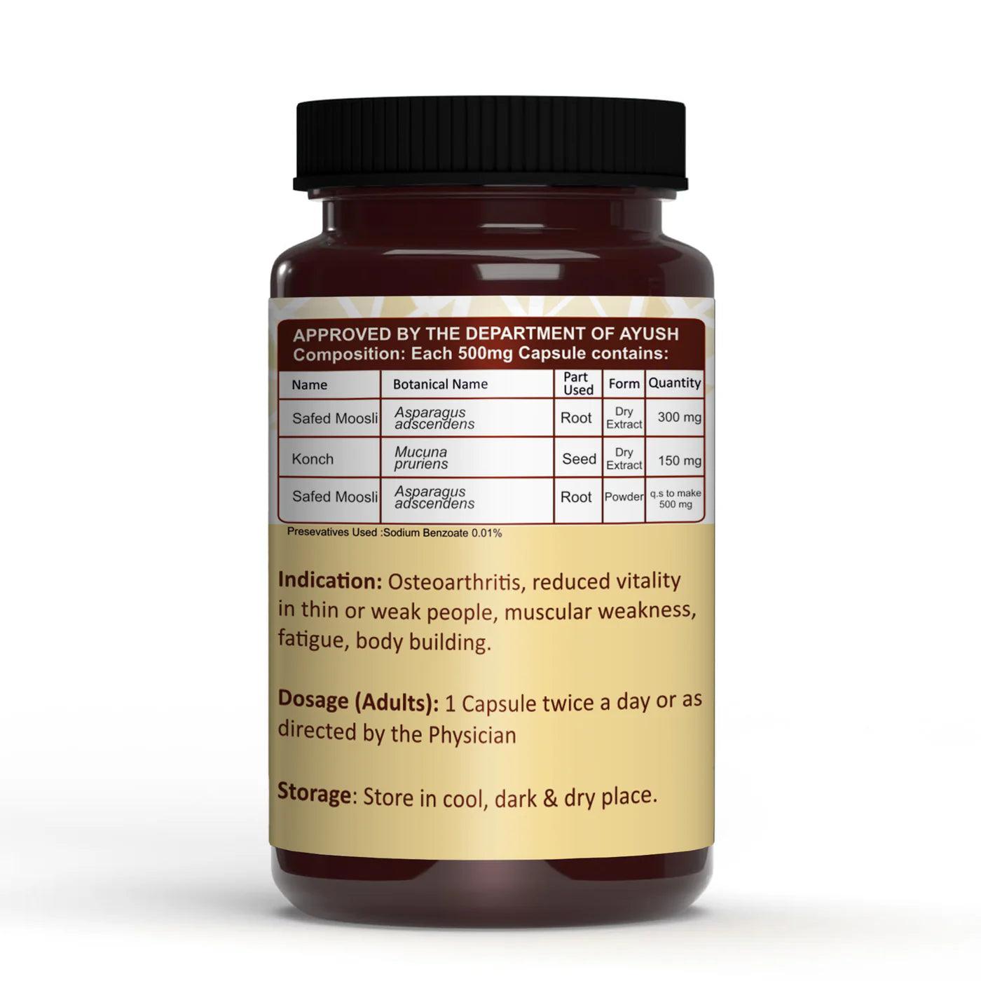 Package Contents: 1 Bottle of Safed Musli Extract Capsules