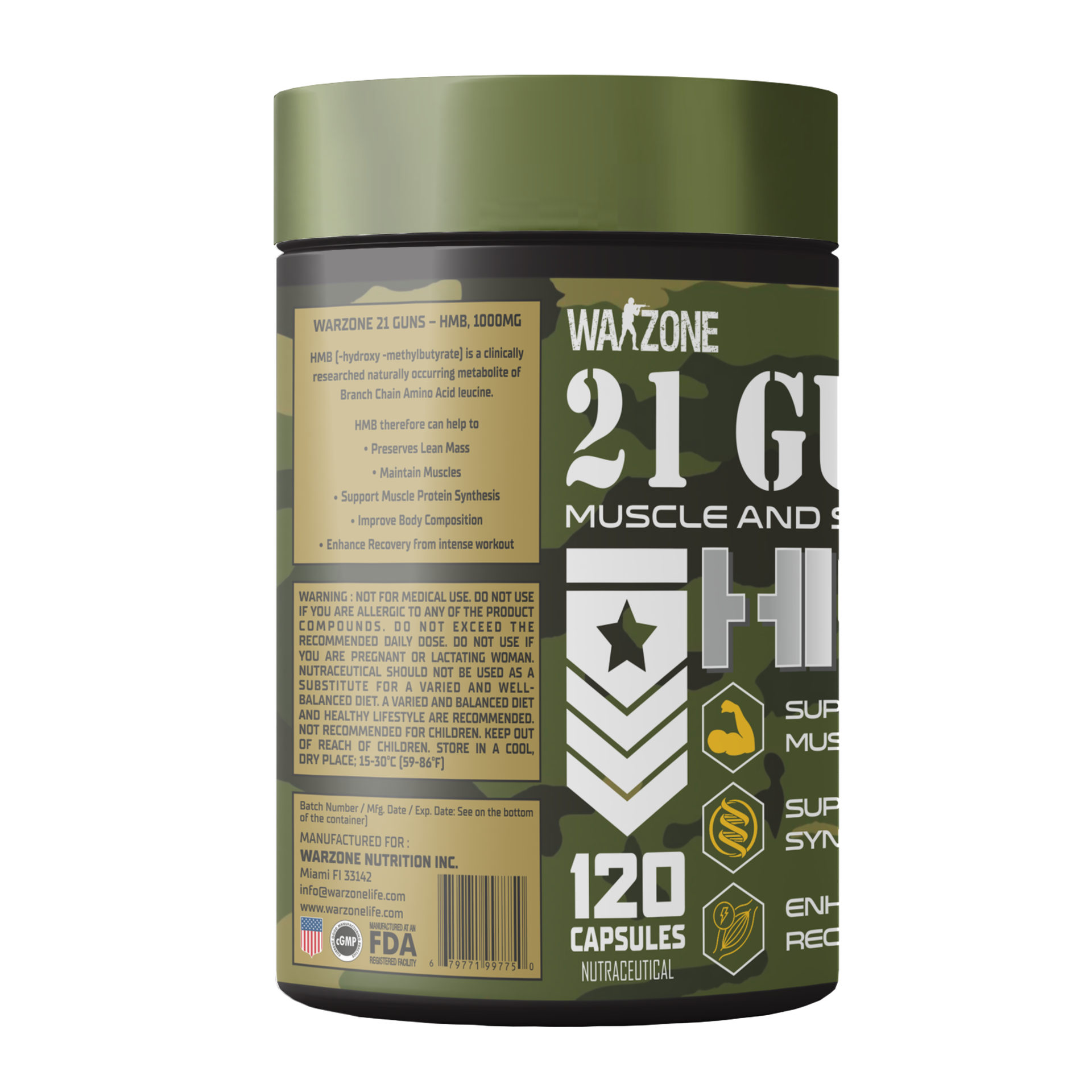 Warzone 21 Guns HMB 1000mg Capsule is an active metabolite of the industry’s best-known muscle-building amino acid, leucine. And what better way to get it than in pure powder form with Body Ripped HMB, giving you the purest HMB and ZERO FILLERS.